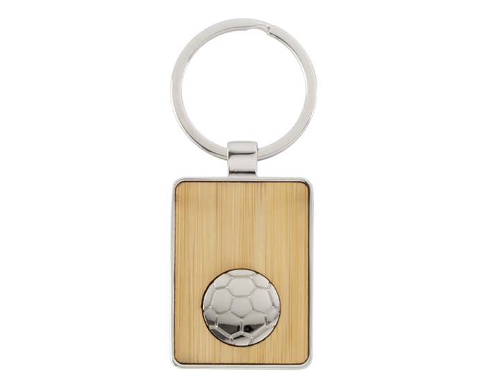 MESSI - Llavero de bambú con balón metálico de futbol de soccer. Presentación: Caja individual.