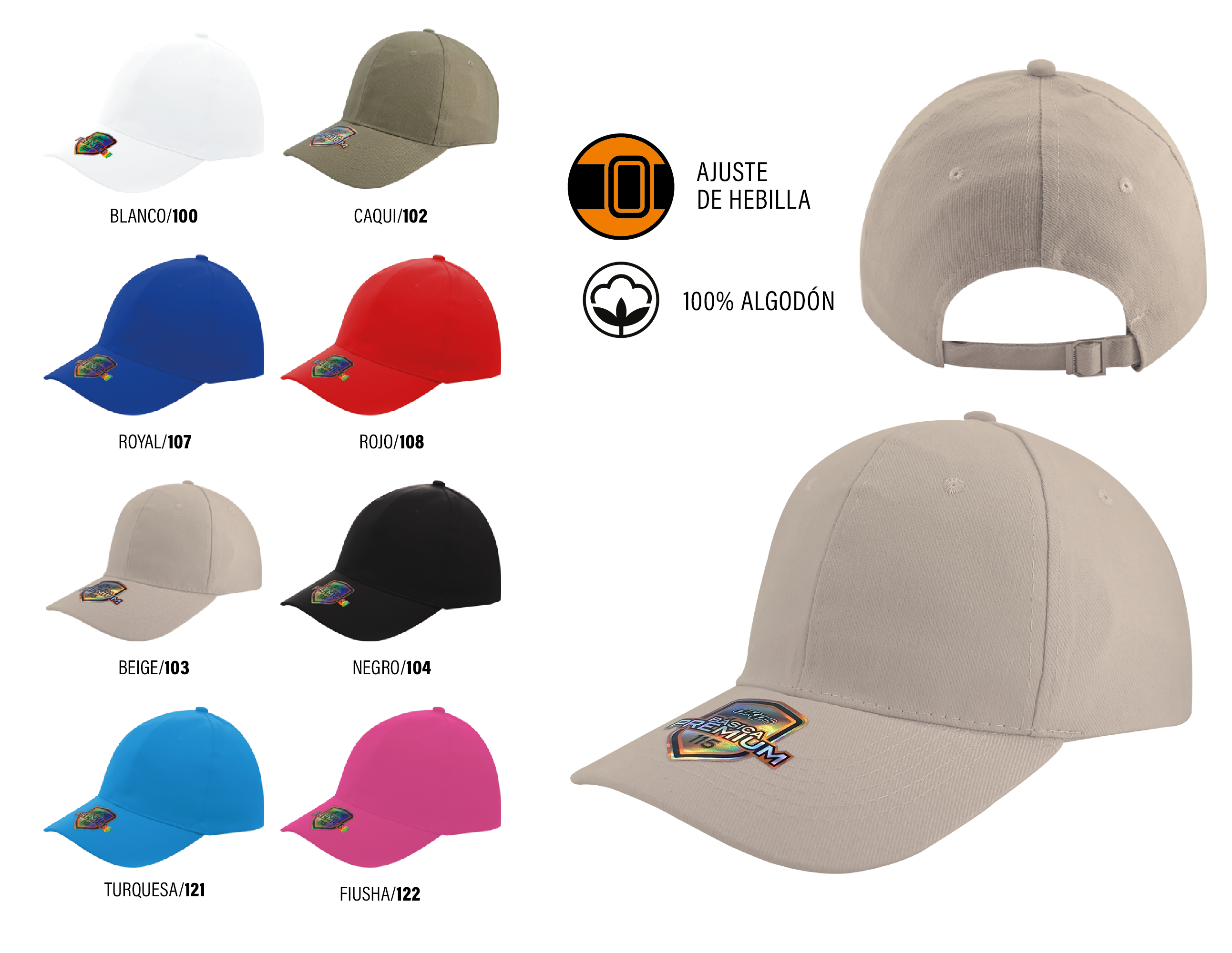 GORRA PRO 65% ALGODON 35% POLIESTER AJUSTE DE HEBILLA METALICA ROYAL...