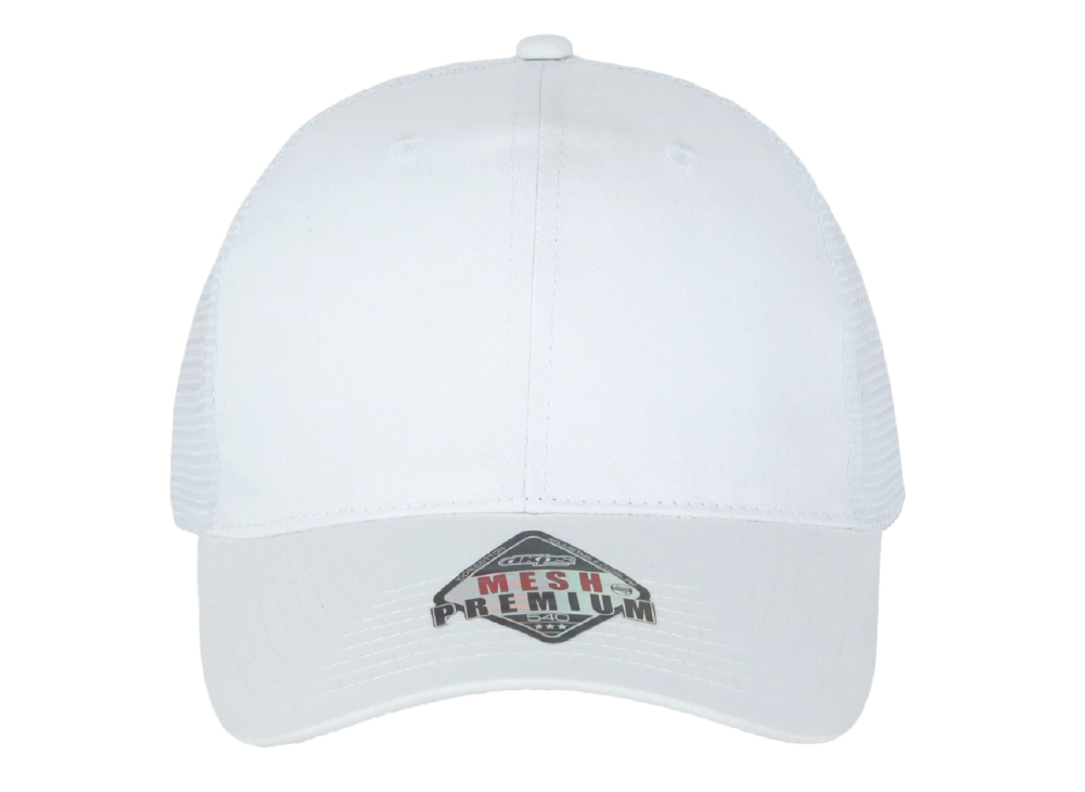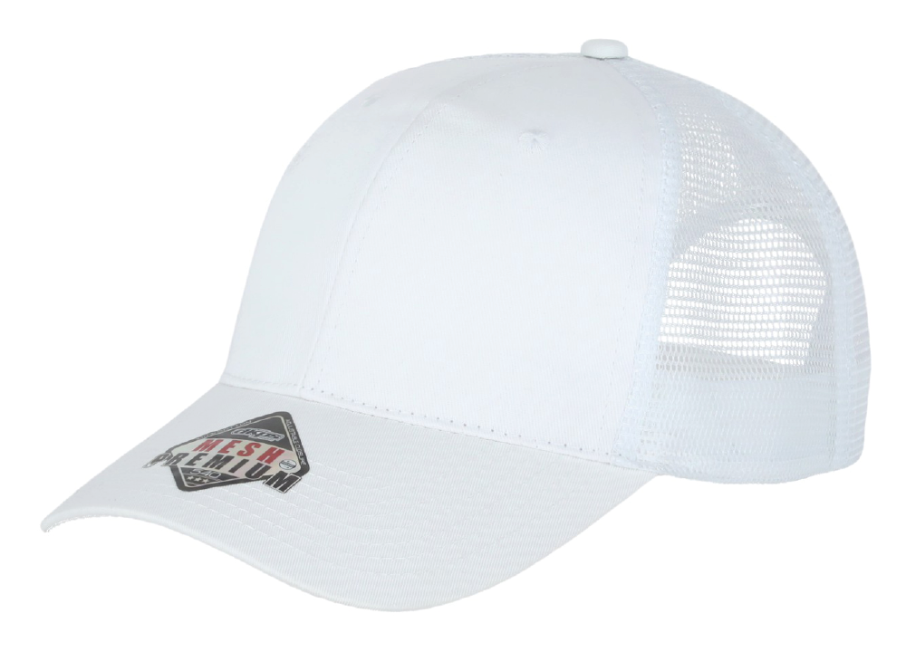 GORRA MESH PREMIUM 100% POLIESTER AJUSTE PLASTICO BLANCO