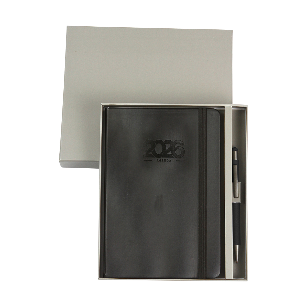 Agenda Diaria Cameri. - Set de Agenda diaria 2026 bi-tono con pluma y caja de re...