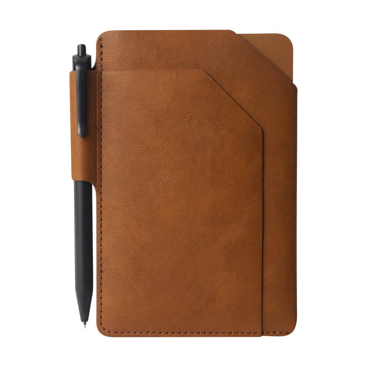 PORTA PASAPORTE RUNA - Funda de curpiel para pasaporte. Incluye un libreta de 32 hojas a raya, un bolígrafo de tinta negra y un práctico compartimento para tu pasaporte. Ideal para viajes y notas rápidas.