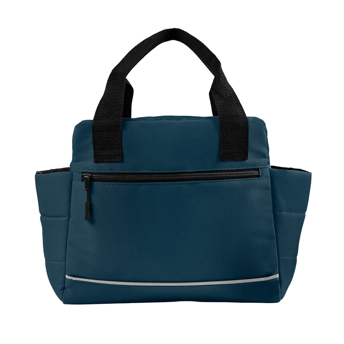 LONCHERA NUAN - Lonchera con interior plastificado. Compartimento principal con cierre, dos bolsillos laterales y un bolsillo frontal también con cierre, ideal para llevar contigo pequeños snacks. Adicional, agregar un detalle reflejante en la parte frontal, lo que aporta un toque de diseño. Ideal para escuela u oficina, lleva tus alimentos con estilo y de forma segura. Capacidad 12 latas.