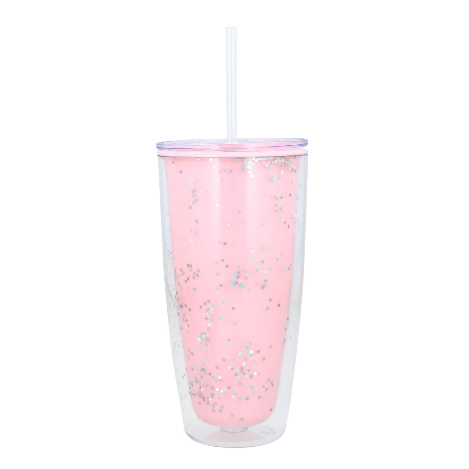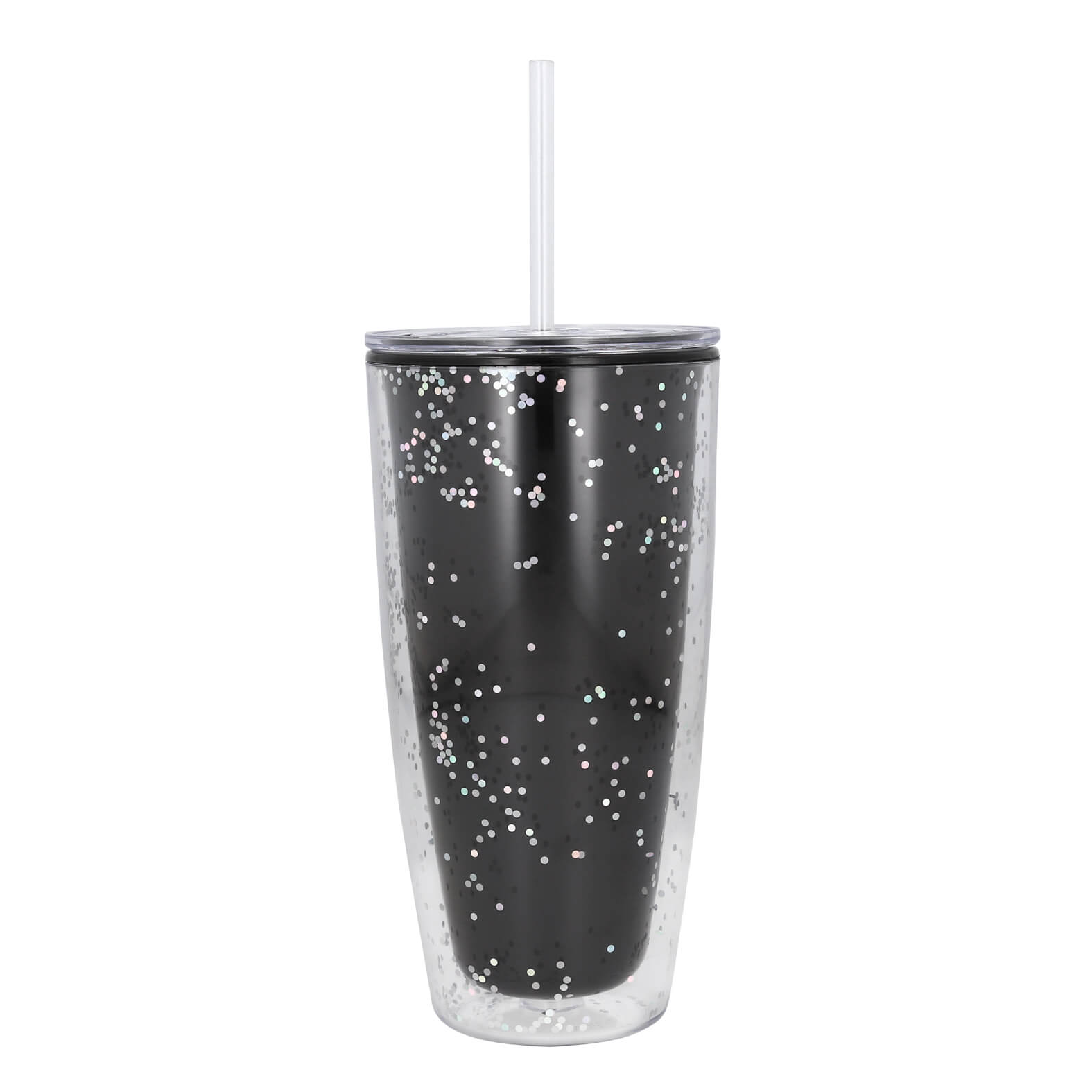 LIB - Vaso de plástico PP traslúcido con glitter, cuenta con tapa de presión ...