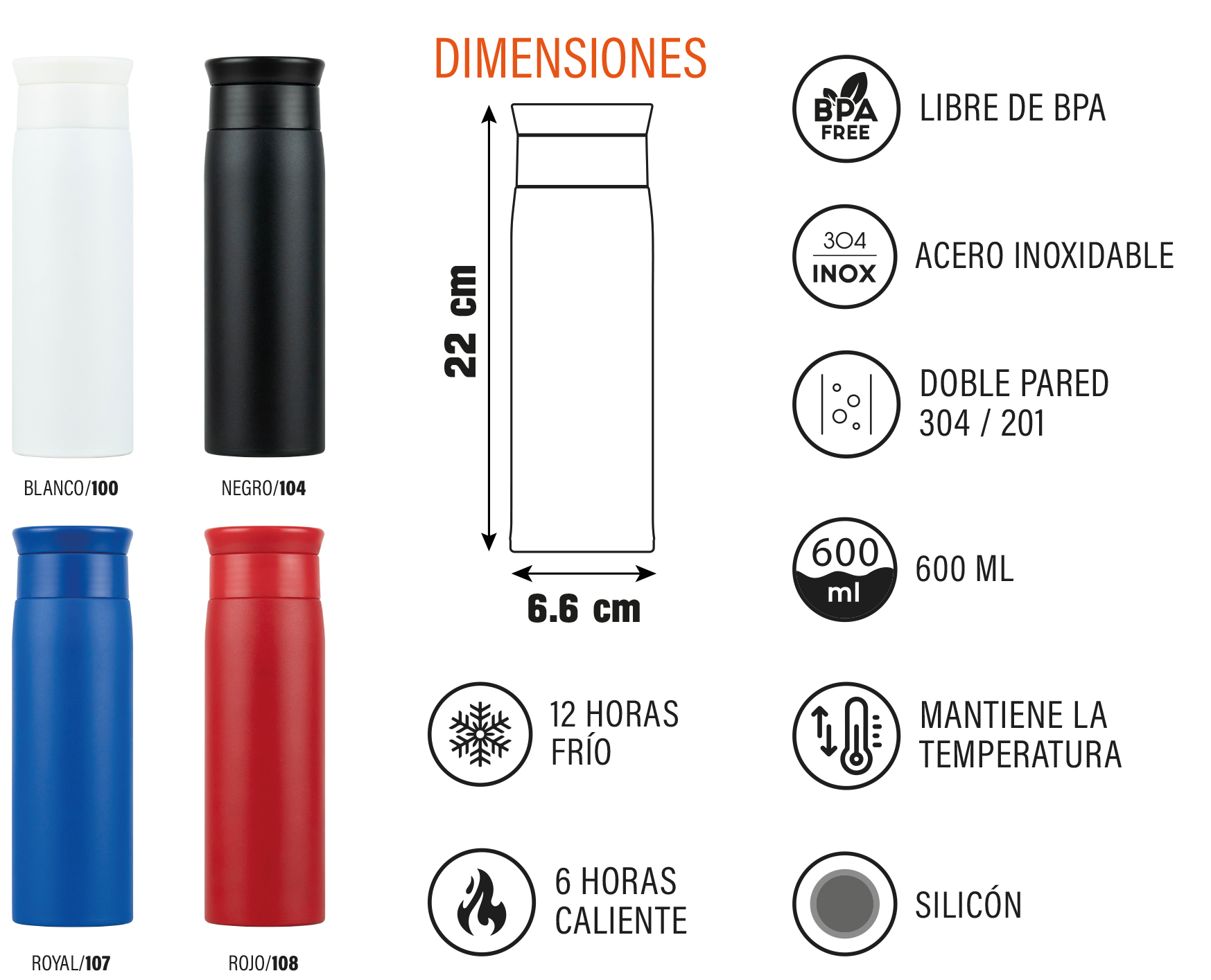 FROC Termo con doble pared de acero inoxidable insulado al vacio, base antiderra...