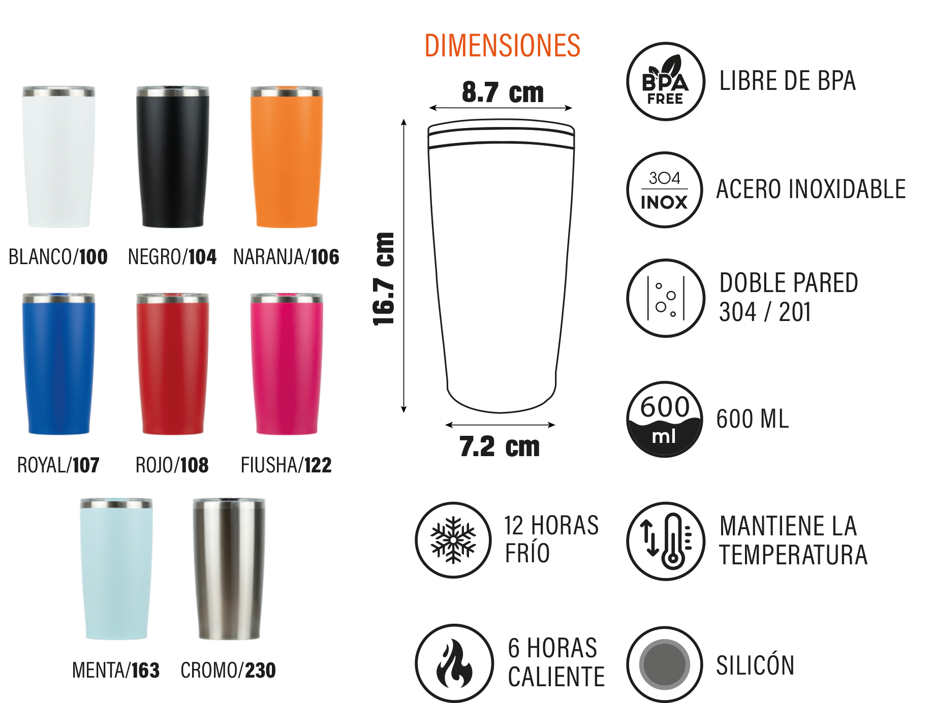 TERMO PREMIUM 20 oz Material: Acero Medidas: 18x9.5 cm Capacidad: 20 oz. Empaque...