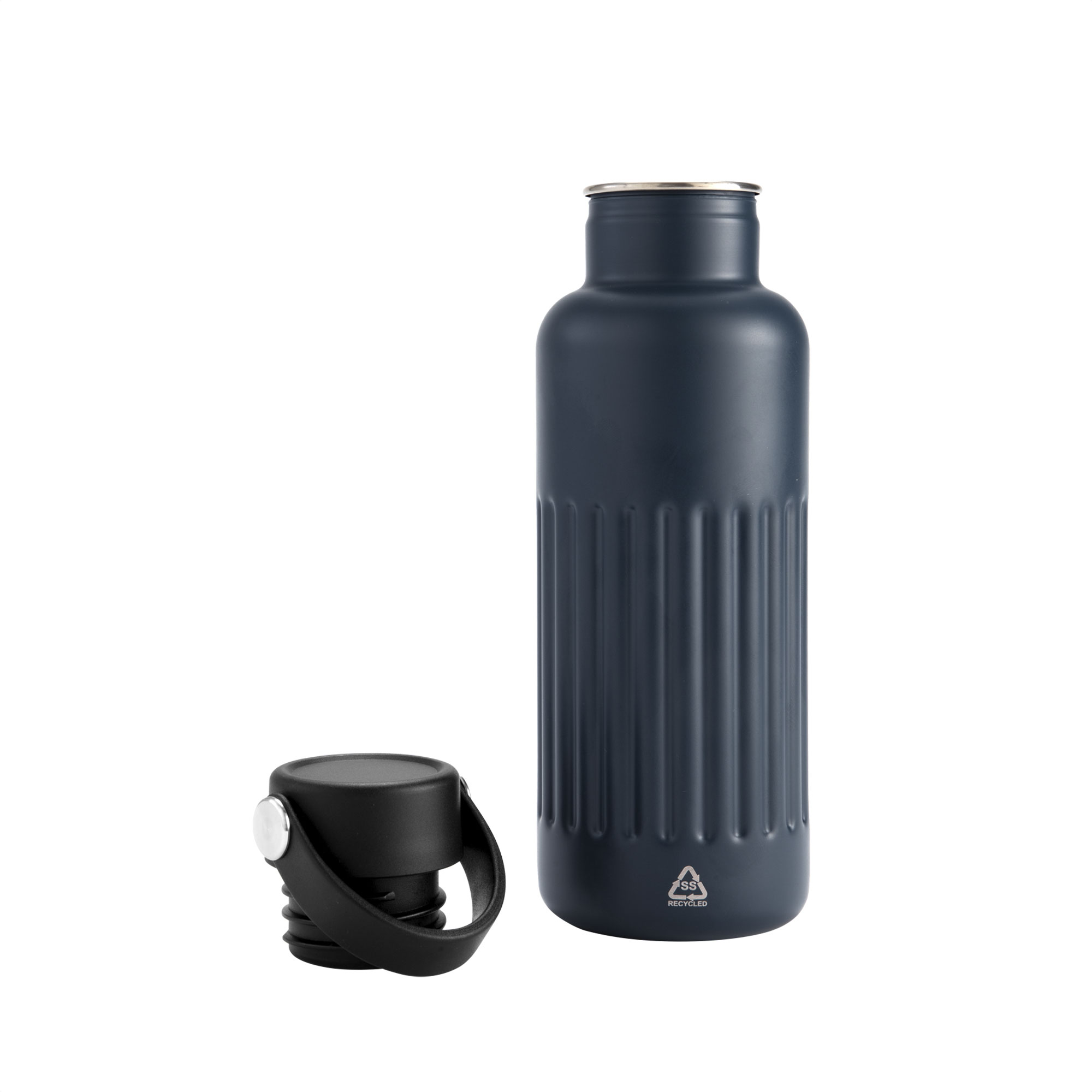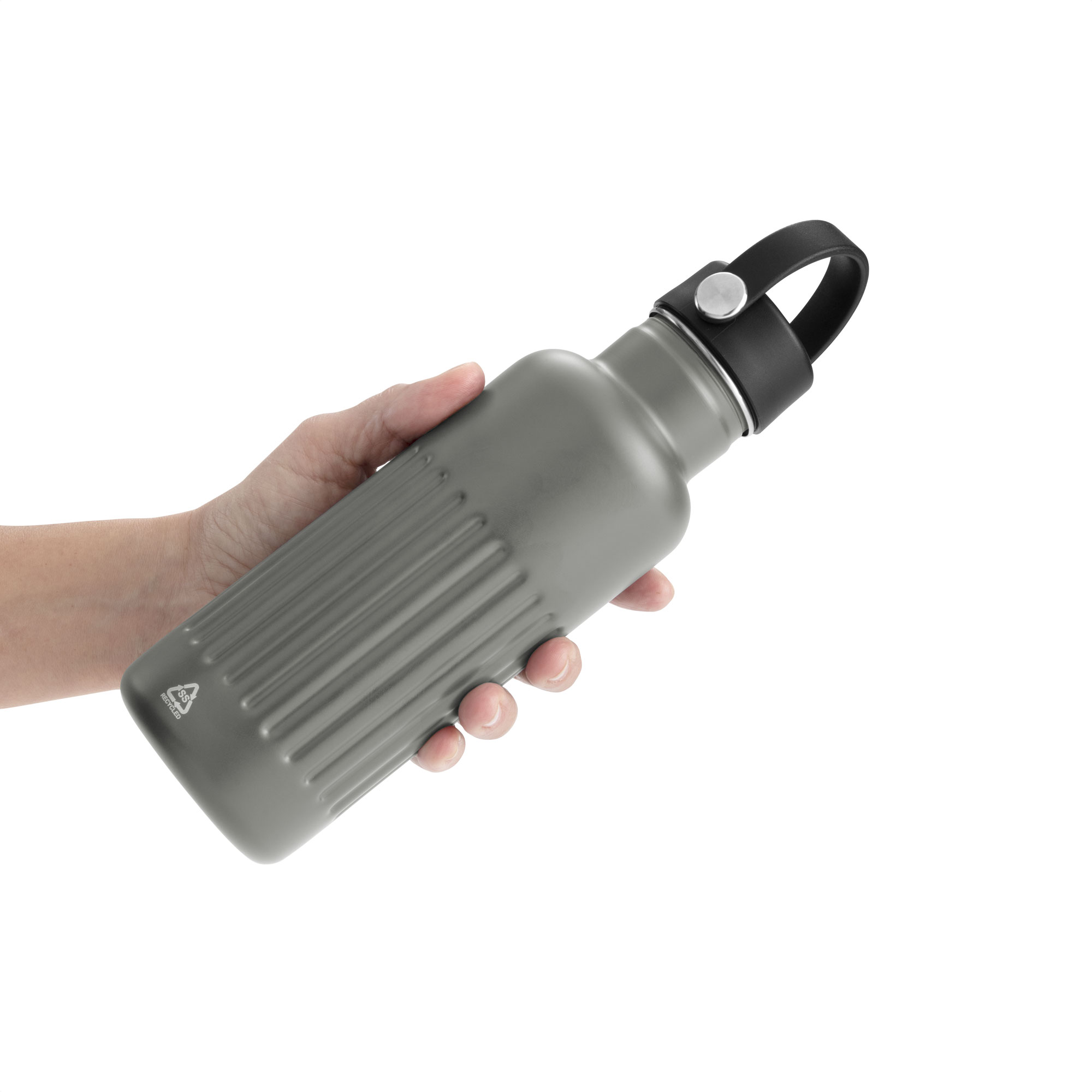 MATERIAL: Acero inoxidable, acero inoxidable reciclado, polipropileno y silicona MEDIDAS: 7,5 x 22,5 cm. IMPRESION: Serigeafía, tampografía, grabado láser