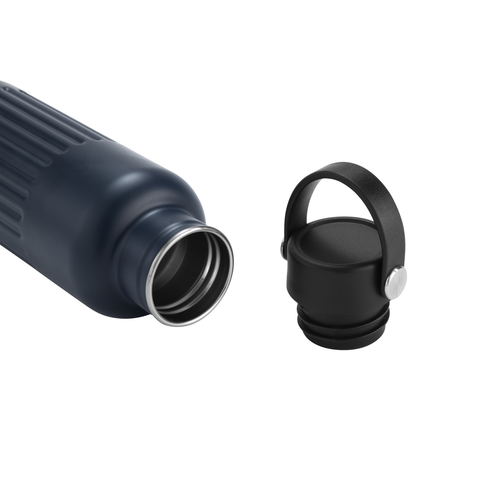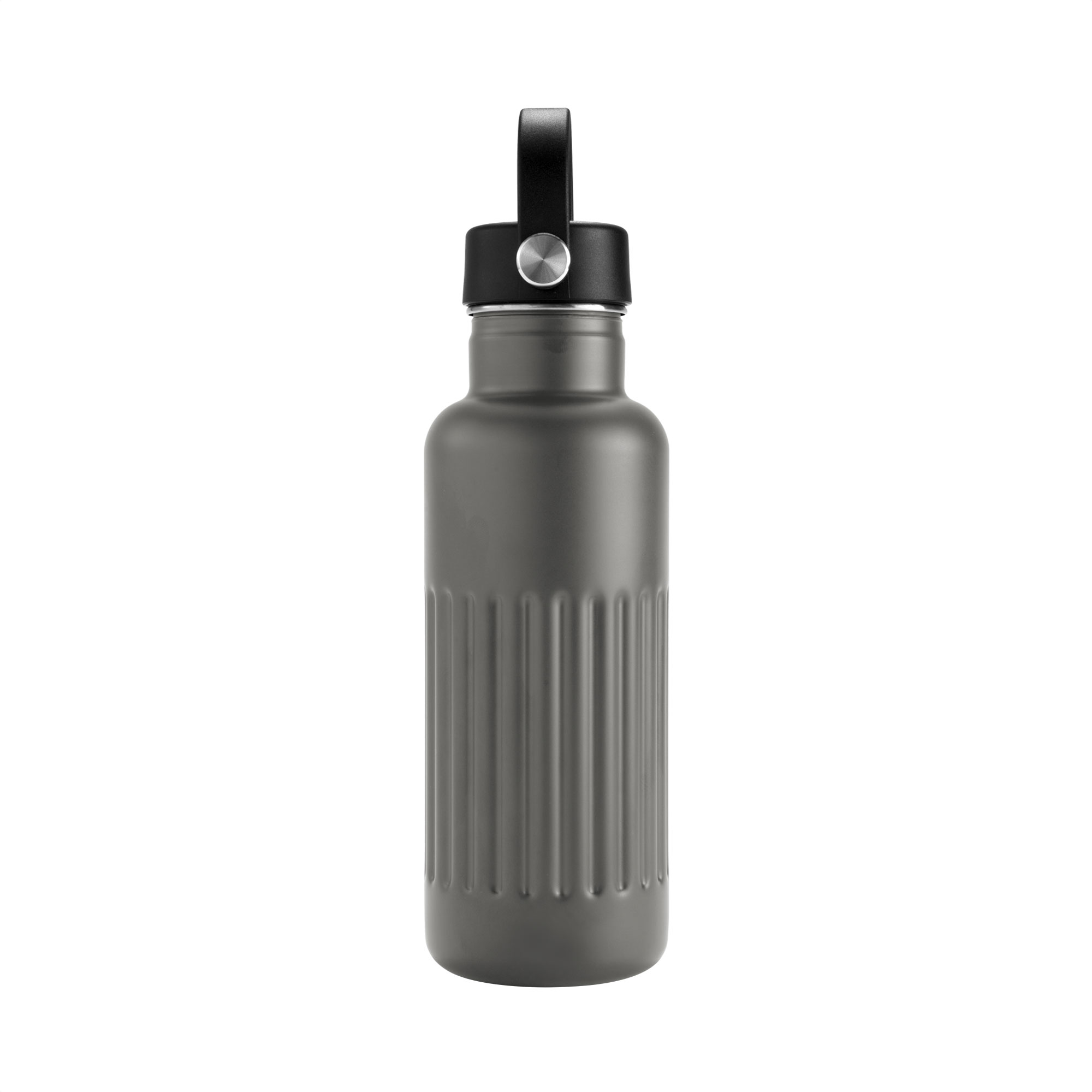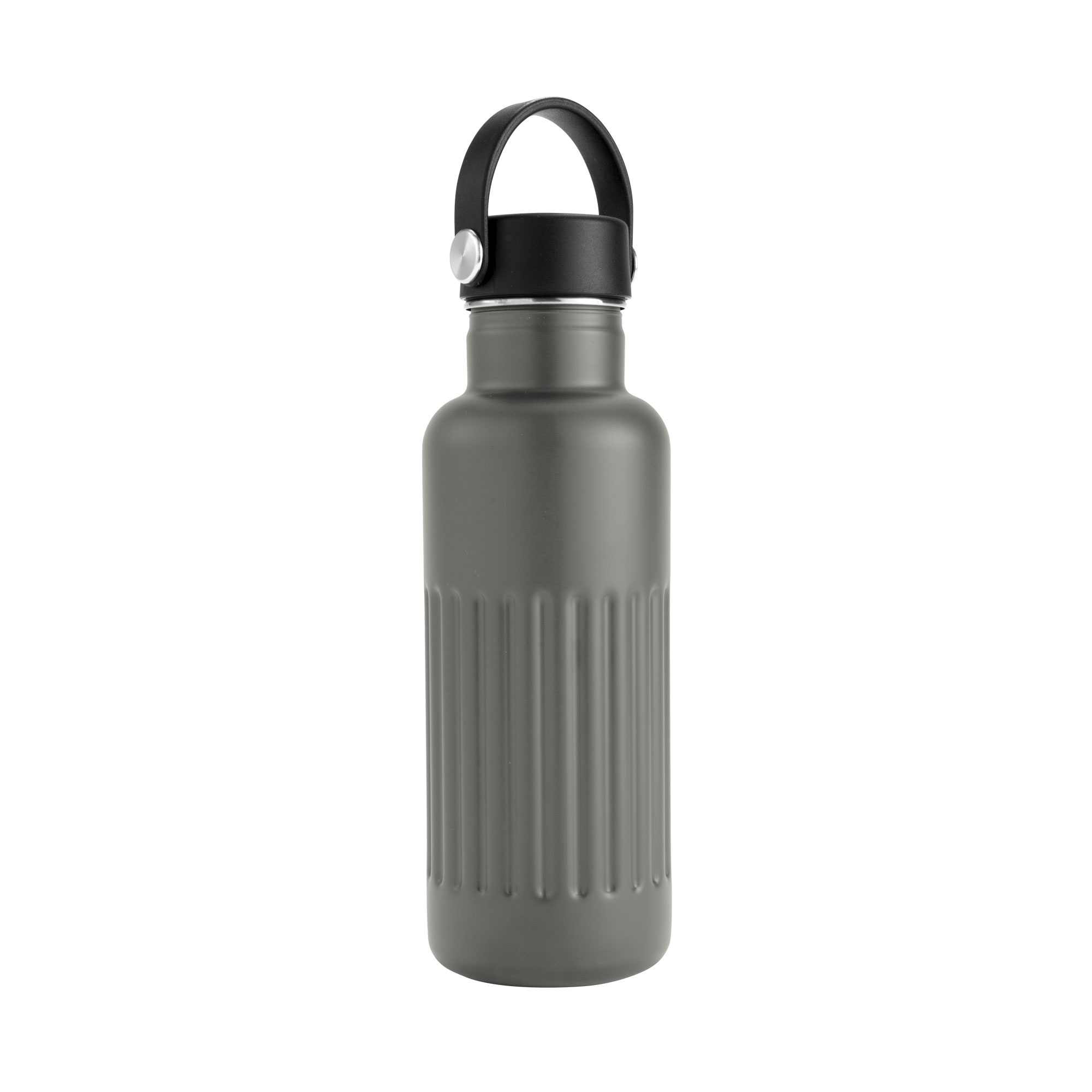 Botella térmica "KAWA" Botella doble pared, sellada al vacío. Botella con aislamiento térmico. Tecnología vacuum. Interior de acero 304 reciclado y exterior de acero 201. Tapa a rosca de polipropileno, interior plástico. Asa reforzada de silicona. Pintura acabado semi mate. Cuerpo texturado para un mejor agarre. Mantiene hasta 8 hs la temperatura de las bebidas calientes y hasta 12 hs la de las bebidas frías