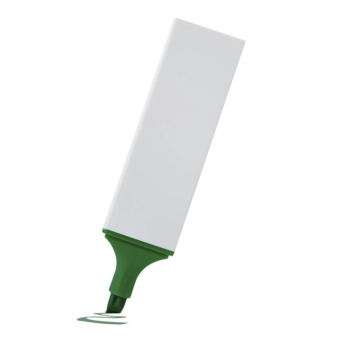 Resaltador "FLOPI" Marcador resaltador. Estructura rectangular plástica color blanco con amplia area de impresión. Punta biselada y puntera del color de la tinta.