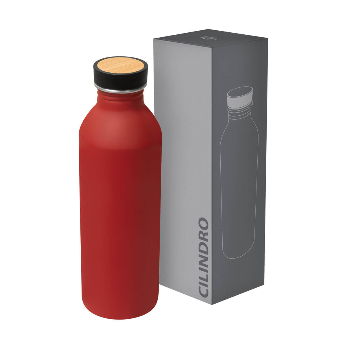 CILINDRO TOHUÍ - Cilindro metálico de una pared. Tapa de plástico y bambú, su sistema de rosca, permite cerrarlo facilmente y prevenir derrames. Su cuerpo en terminado mate le agrega un toque elegante. El bambú es un producto natural el cual puede presentar variaciones en tonalidades y vetas. Capacidad de 18 Oz. Incluye caja individual.