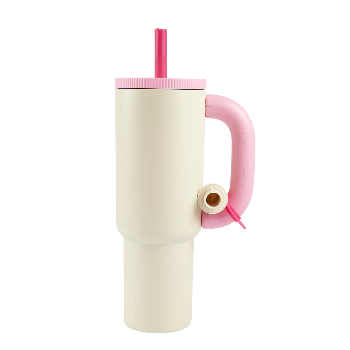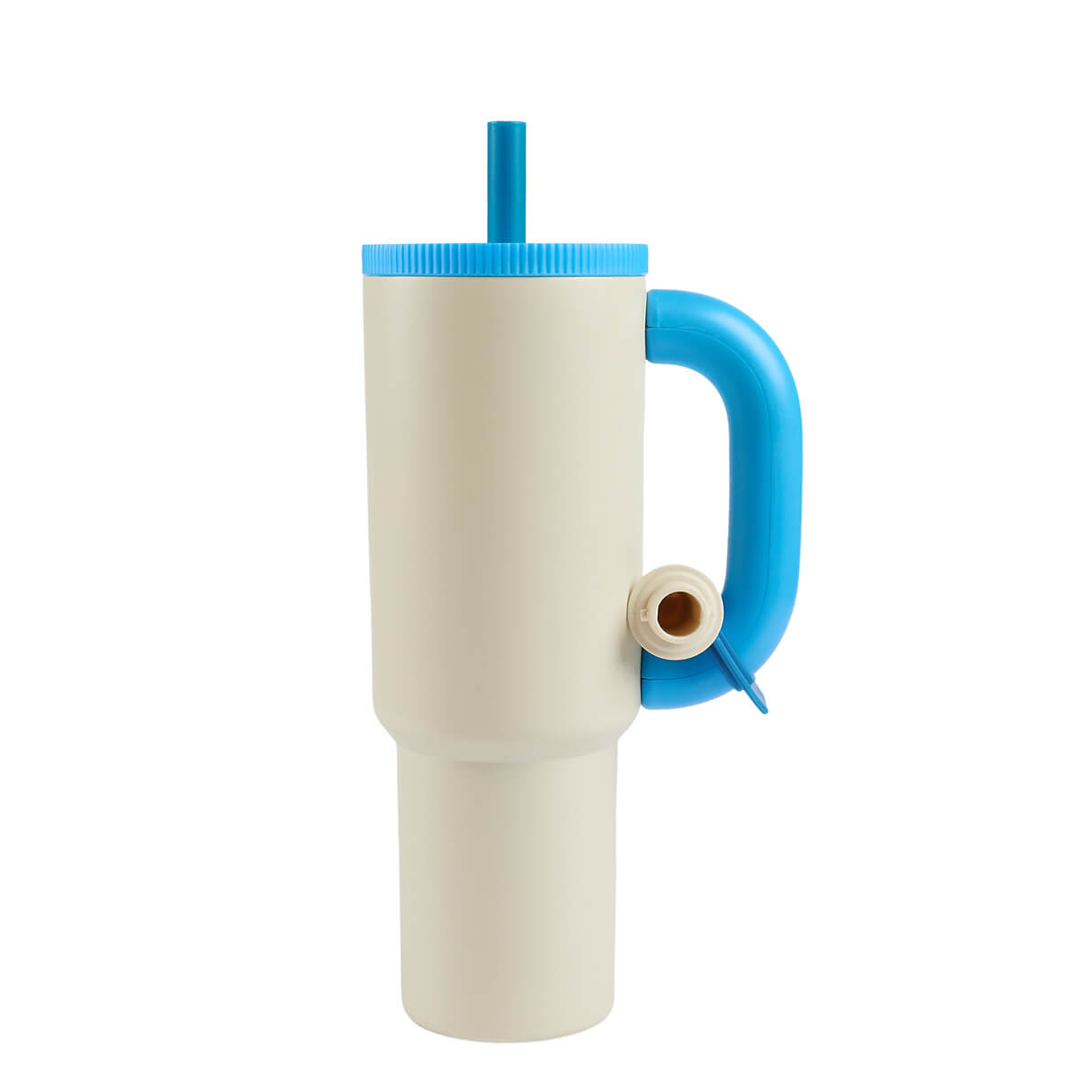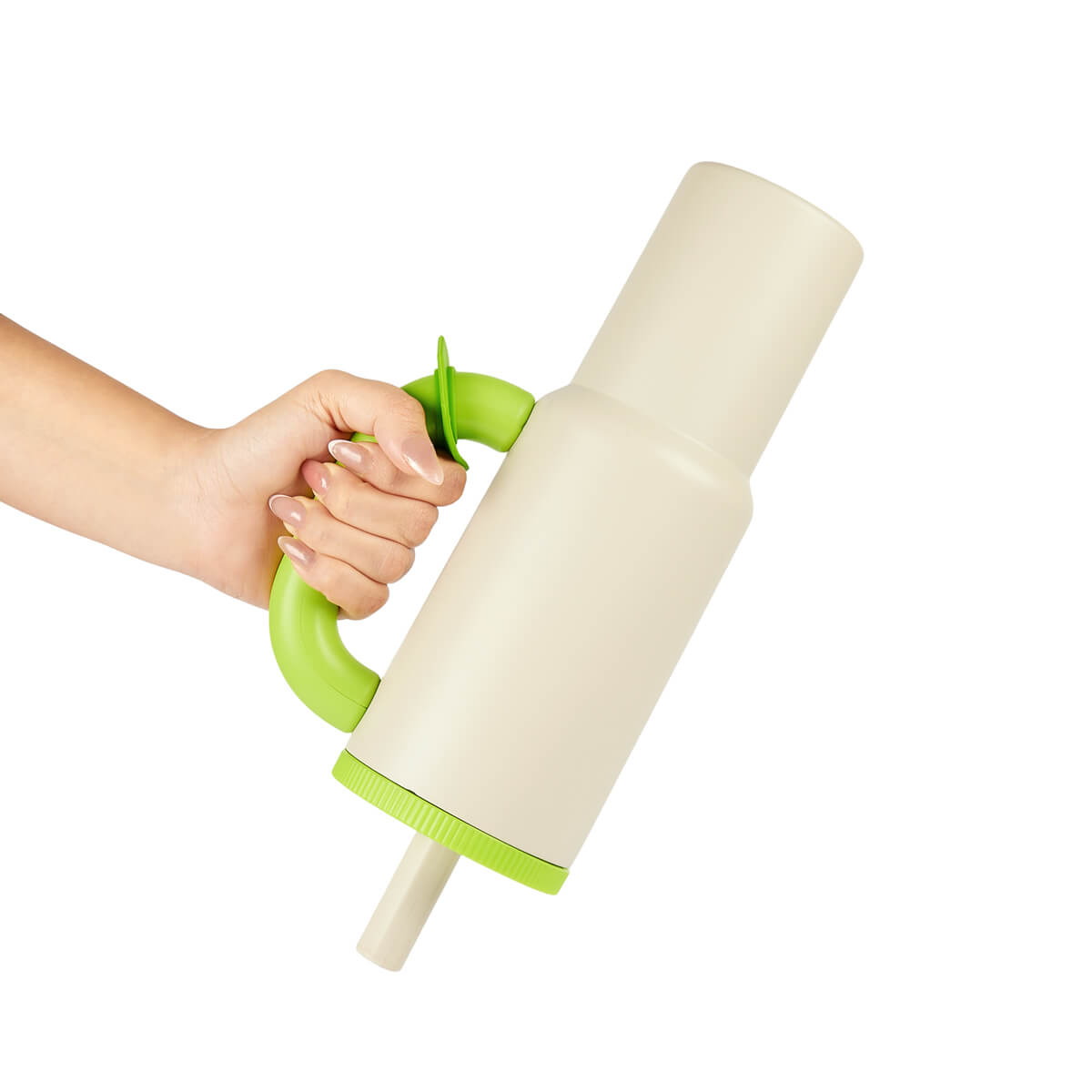 TERMO GIANT - Termo doble pared . Cerrado al vacío. Pared interna y externa de acero inoxidable. Terminado en texturizado rugoso que le brinda un toque moderno y original. Incluye tapa de plástico con sistema de rosca y popote más ancho, ideal para bebidas como Frappes o licuados. Su asa extra grande le permite un agarre más cómodo y seguro. Además, cuenta con un tapón y un sistema de rosca que se integra de manera práctica al aditamento de silicón, evitando que se extravíe. Ideal para llevar a todas partes con un look moderno y diferente. Mantiene bebidas calientes por 6 hrs y frías hasta 12 hrs. Capacidad de 40 Oz. Base de 8.3 cm de diámetro. Incluye caja individual.