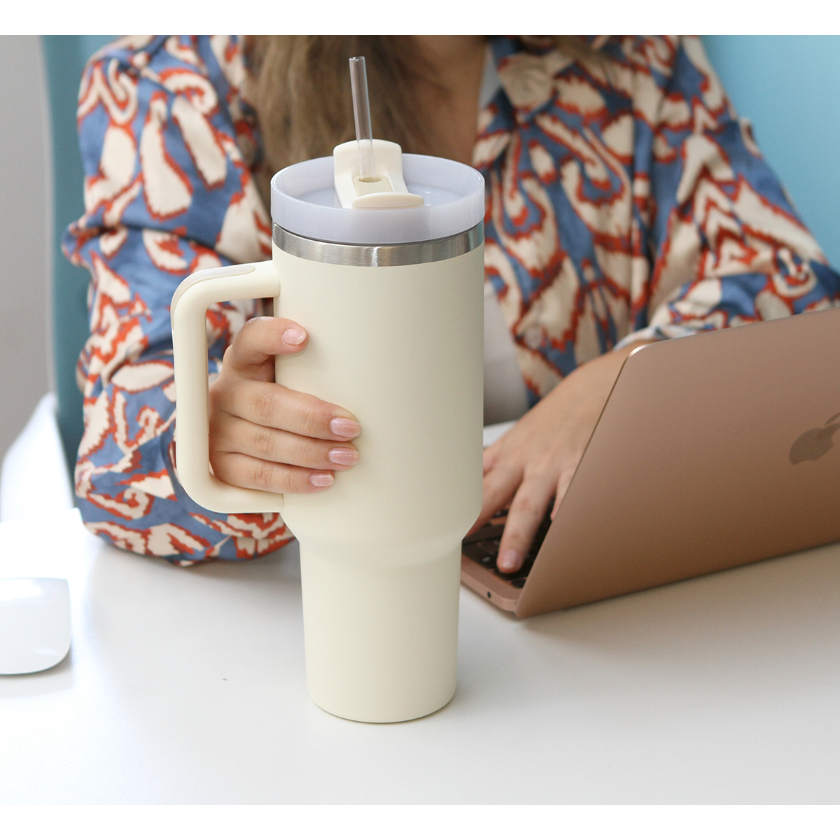 Termo Caleri. - Termo Jumbo fabricado en acero inoxidable de doble pared con asa y tapa deslizable con opción para usar con o sin popote. Cubierta giratoria con tres posiciones: apertura especial para popote que mantiene el popote reutilizable en su lugar, apertura de bebida para tomar directamente del termo y cubierta completa para cerrar el termo. Capacidad de 1,200 ml (40 oz). Incluye caja individual.