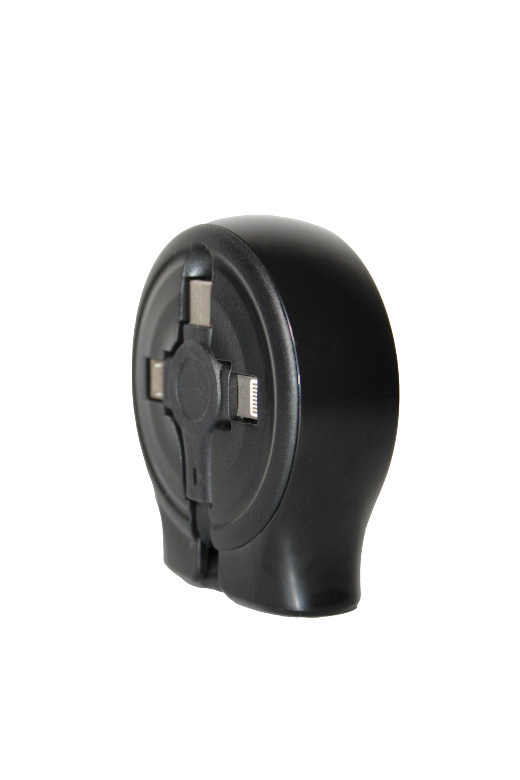 Cargador “Telescopio” 3 en 1 con cables retráctiles: micro USB, USB tipo C y Lightning.