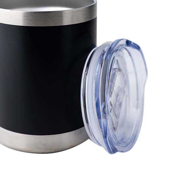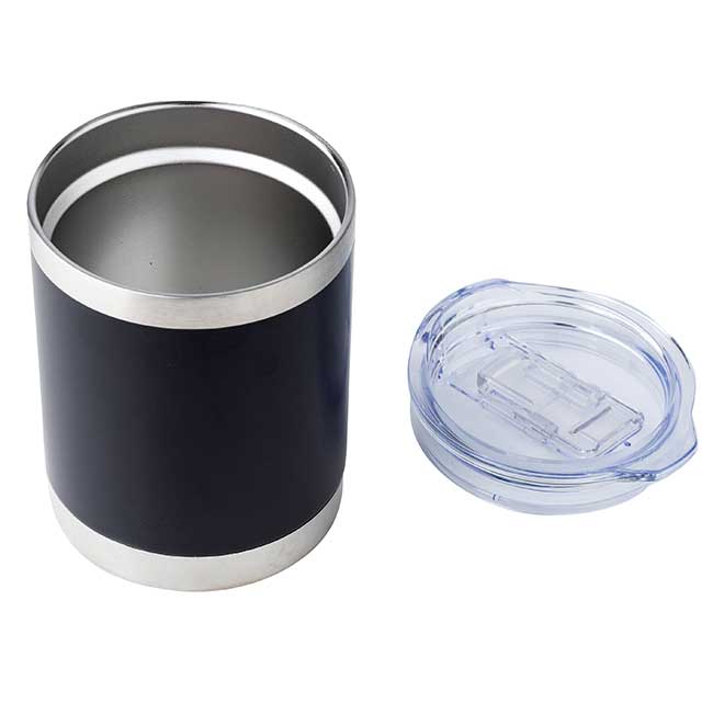 Tarro Encino Capacidad: 350 ml. Sistema de doble pared al vacío. Tapa de plástico con cierre deslizable. Colores: Blanco y Negro.
