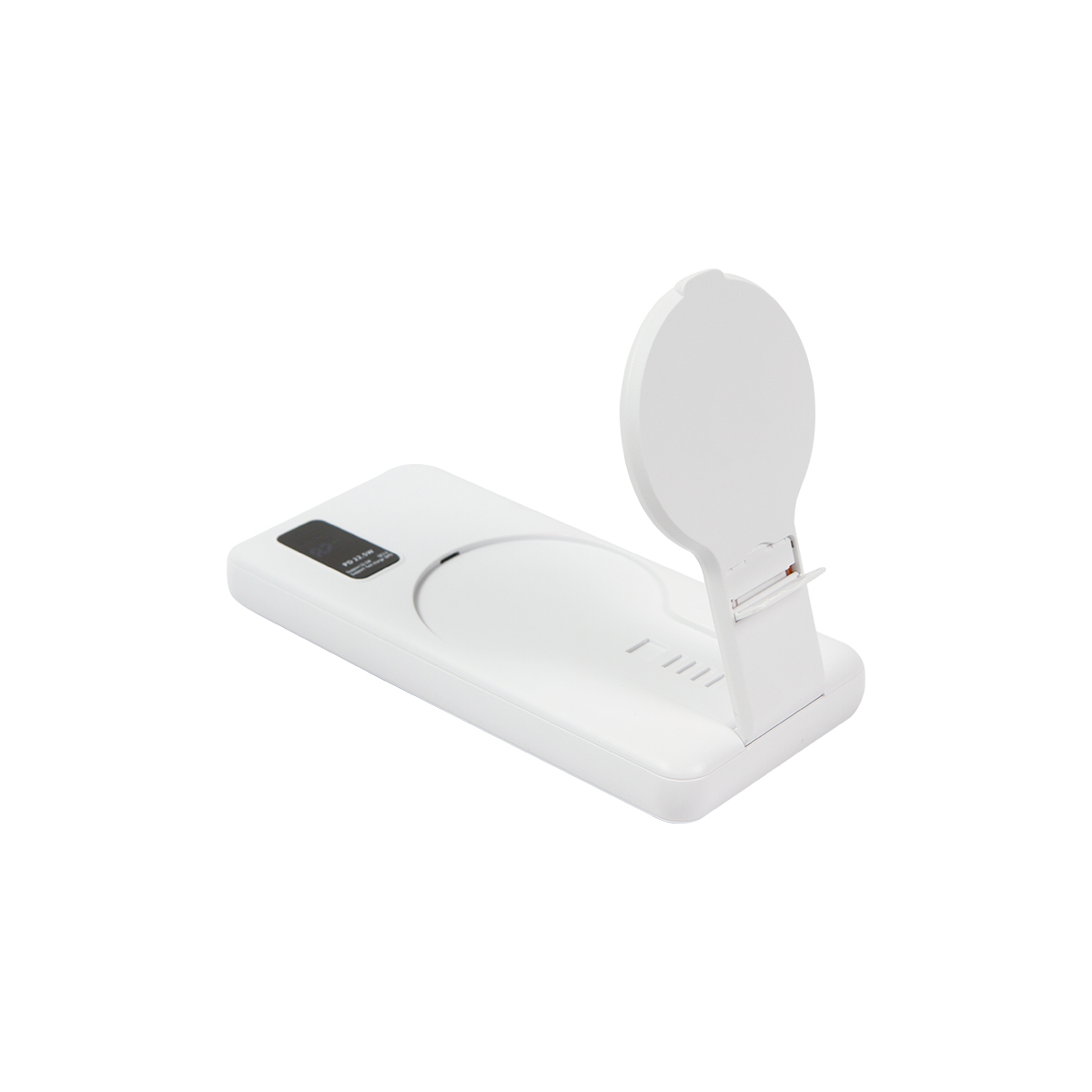 Power bank Farnham. - Power bank con capacidad de carga inalámbrica fabricado en ABS con 15 W de potencia. Entrada tipo C y micro Input. Con dos salidas tipo USB y una tipo C. Capacidad de batería 10,000 mAh, cuenta con luz digital que muestra la batería restante. Incluye un manual y un cable de carga corto.