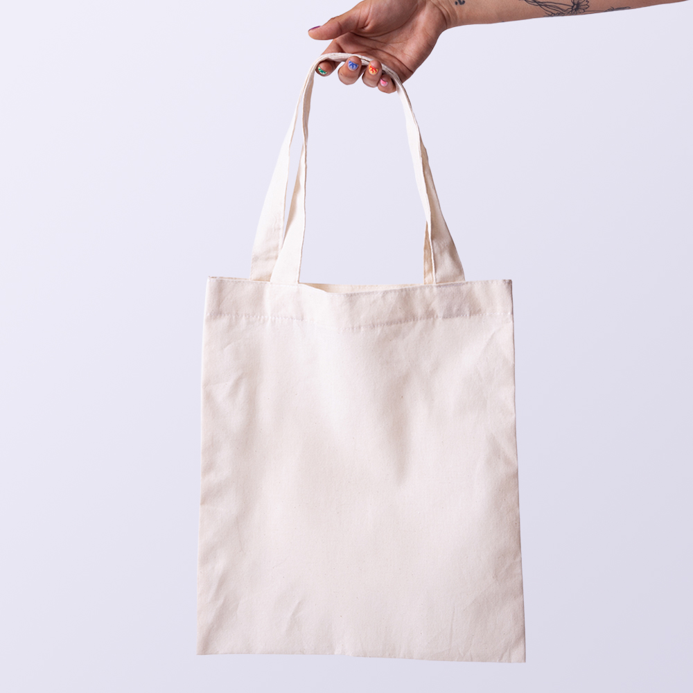TURCHI Bolsa de algodón cosida con asas rectas y broche interno....