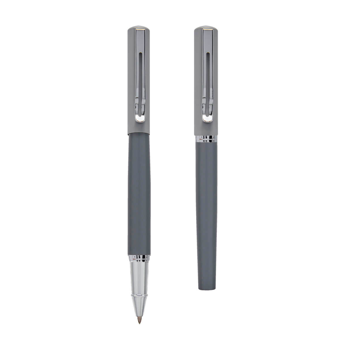 BOLÍGRAFO ABÚ - Bolígrafo metálico con tapón. Color en dos tonos de gris. I...
