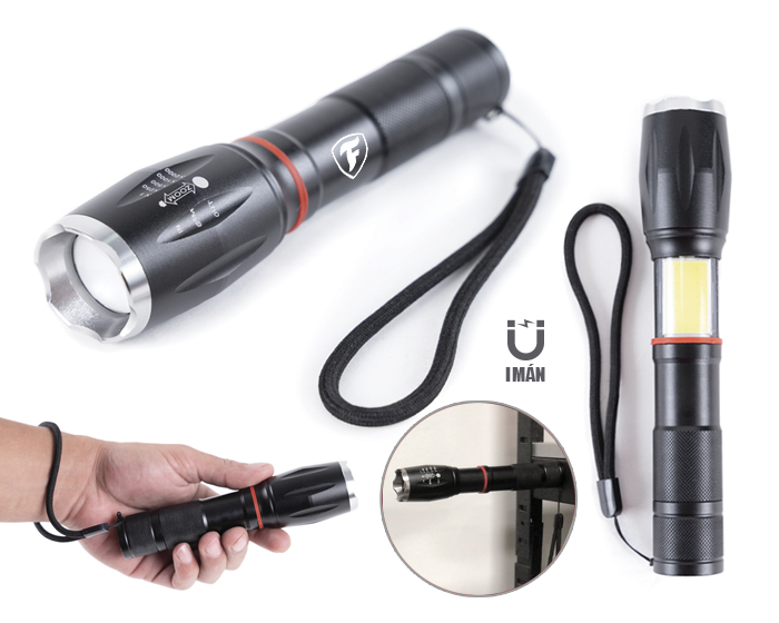 LUCERNA Linterna metálica teléscopica con imán, luz LED, cabezal flexible y r...