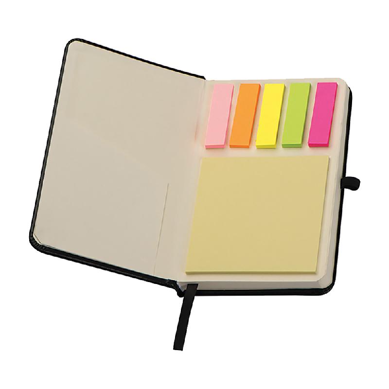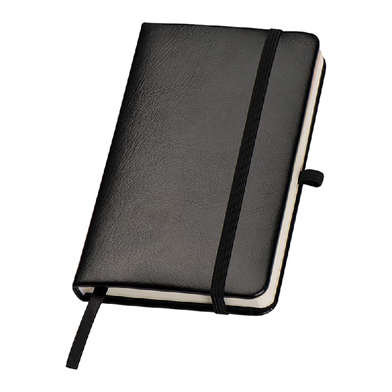 BOR Libreta con cubierta de PU, banda elástica, separador, notas auto-adhesivas, porta bolígrafo y 80 hojas rayadas. - MEDIDAS: 9,0 x 14,3 x 2,0 cm