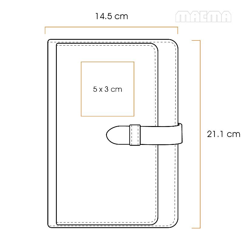 ESPARTA Libreta A5 de PU, porta tarjetas y porta bolígrafo, con 128 hojas rayadas. - MEDIDAS: 14,5 x 21,1 x 2,2 cm