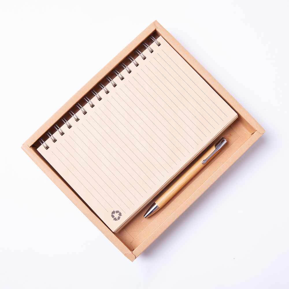 ALTEA Set de libreta y bolígrafo ecológico. Incluye libreta con cubierta dura de bambú, con 80 hojas de papel reciclado. Bolígrafo de mecanismo pulsador, con cuerpo en bambú y accesorios metálicos. Incluye estuche de cartón.