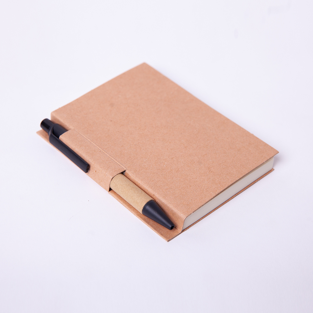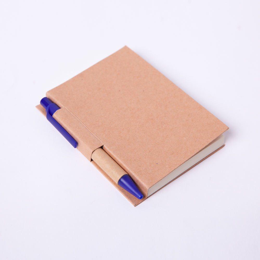 MALTA Libreta con 80 hojas rayadas en papel reciclado y bolígrafo,