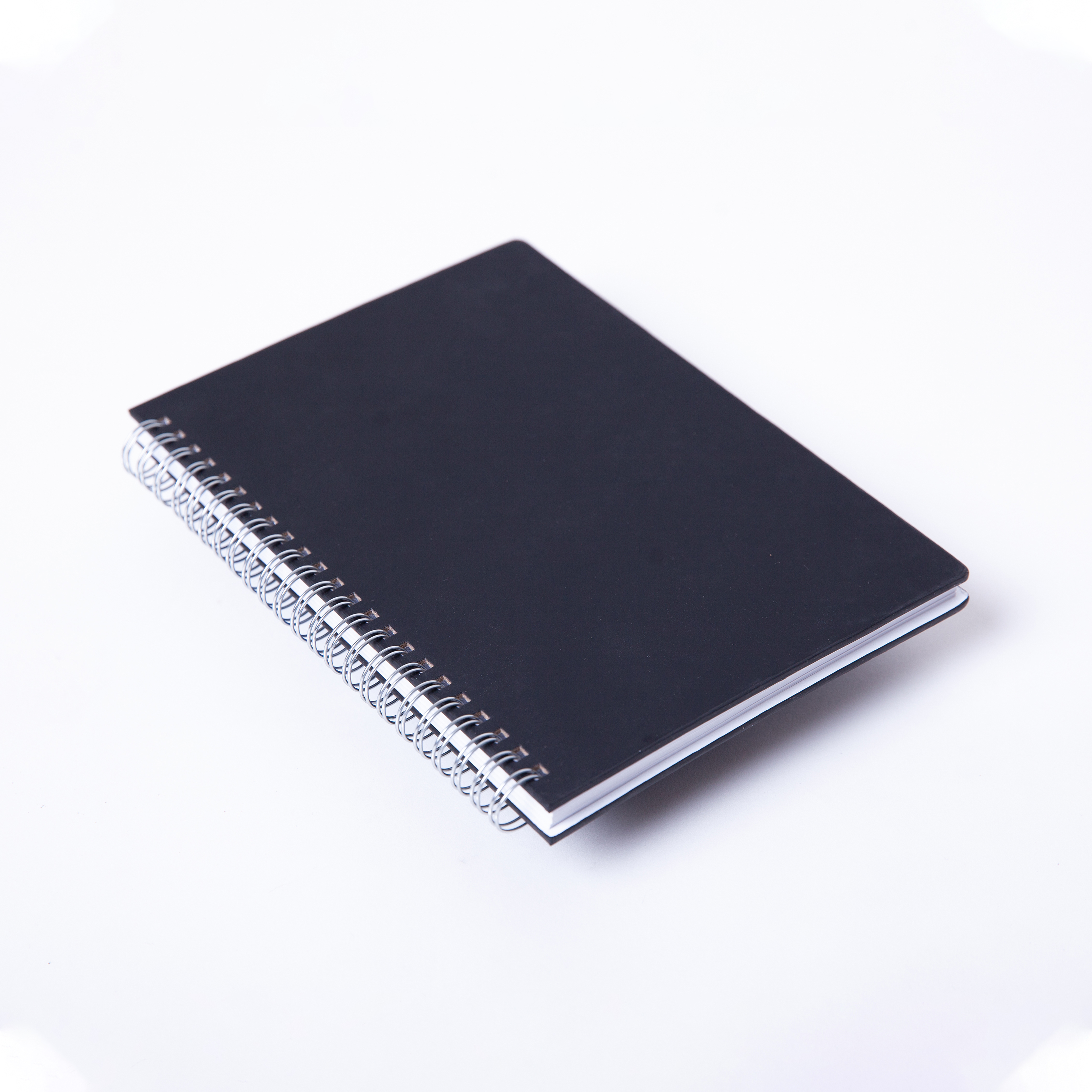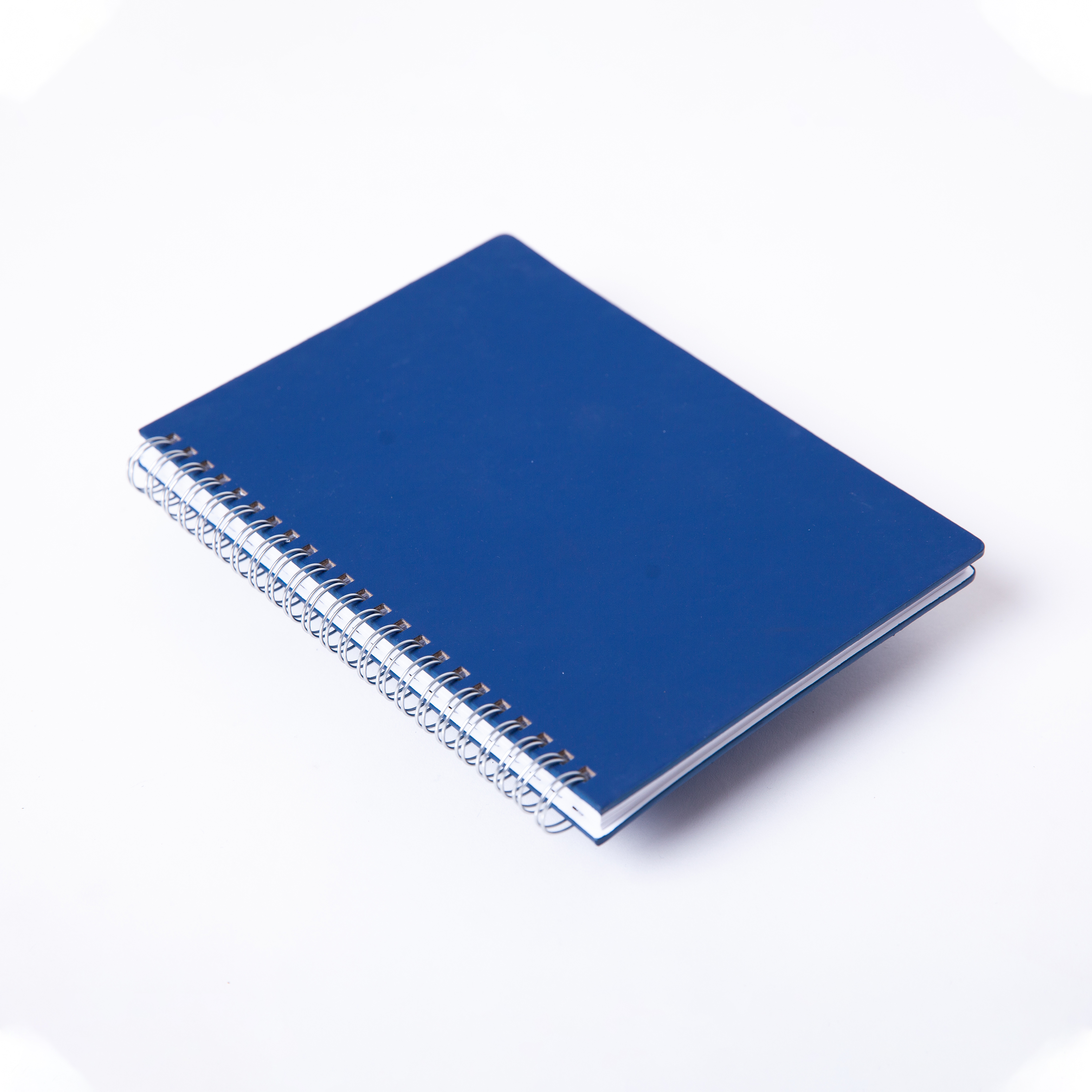Cuaderno con cubierta dura de PU suave al tacto. Con encuadernación de espiral y 80 hojas rayadas.