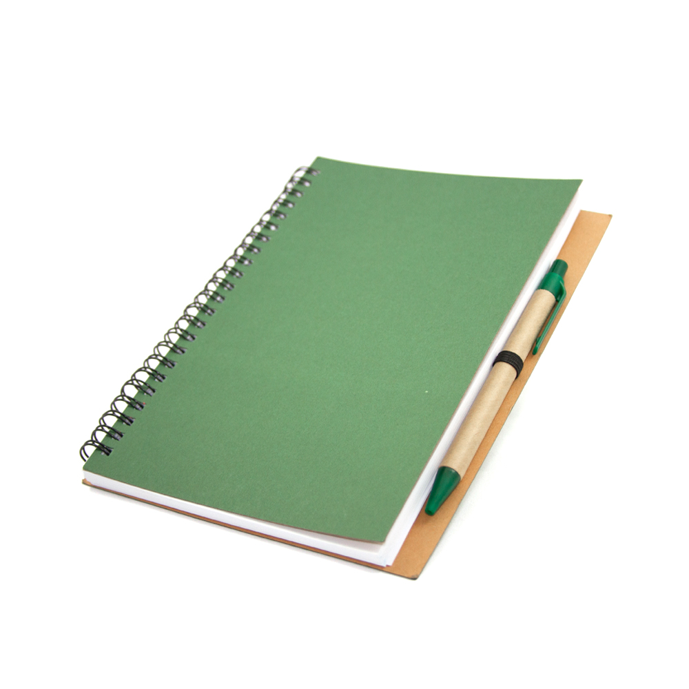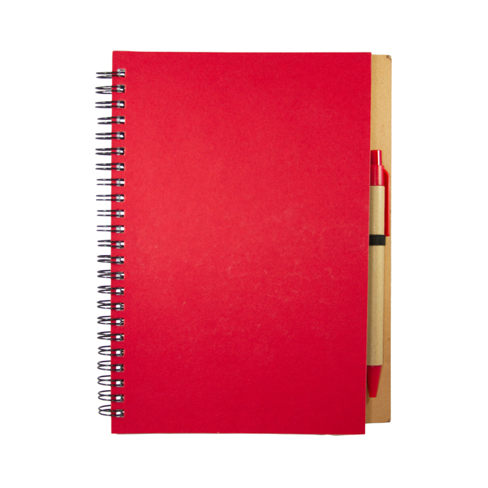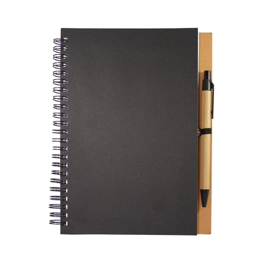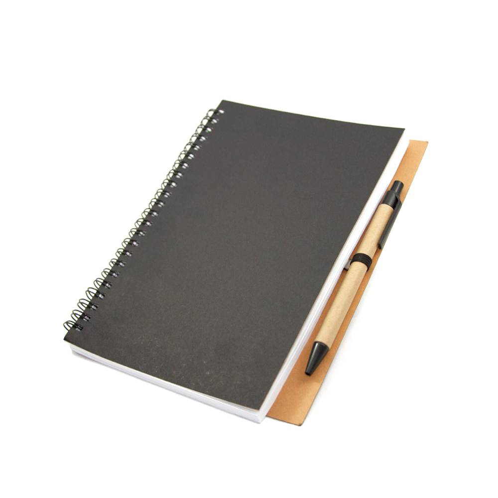 Libreta VALENCIA. Cuaderno ecológico elaborado con cubierta dura de papel Kfrat y encuadernación de espiral con 80 hojas. Incluye bolígrafo ecológico con mecanismo retráctil.