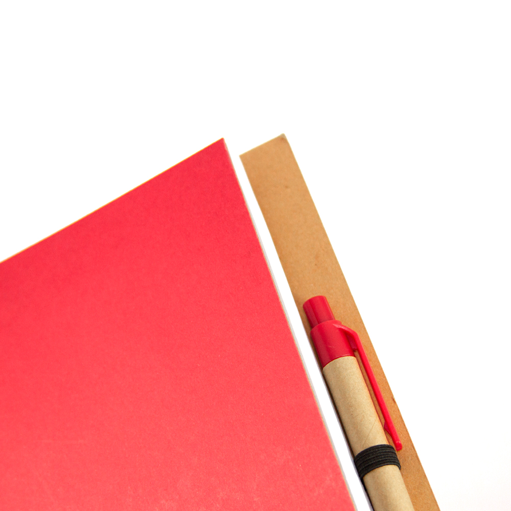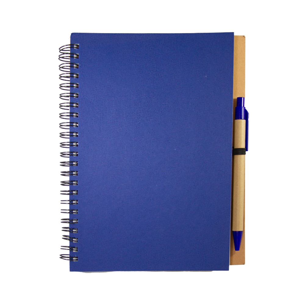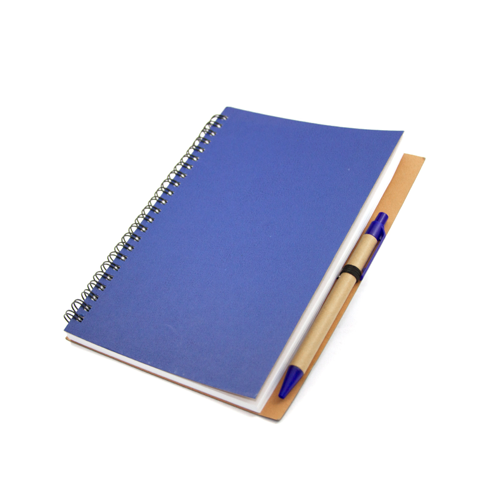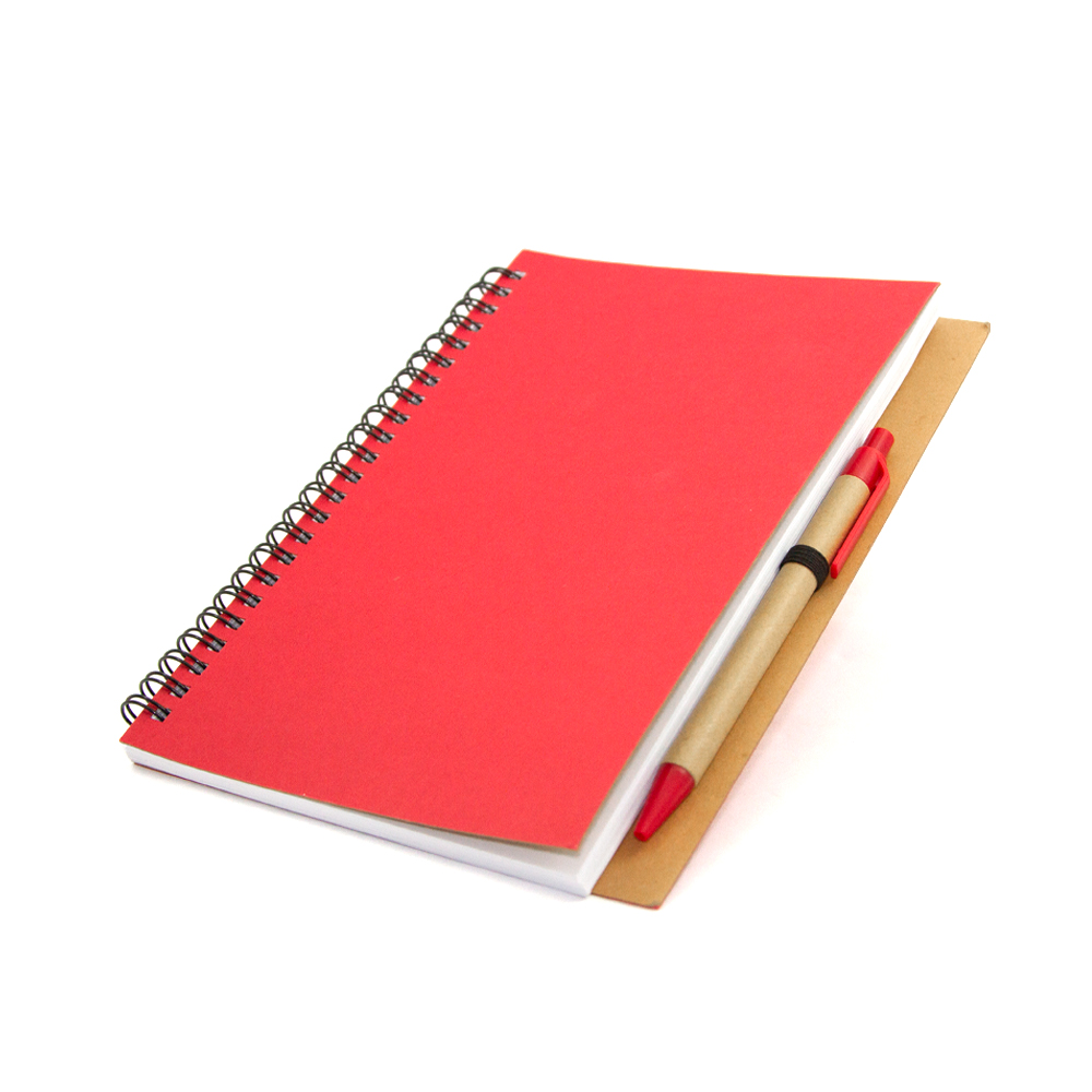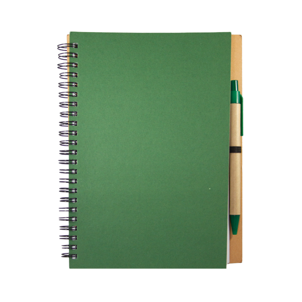 Libreta VALENCIA. Cuaderno ecológico elaborado con cubierta dura de papel Kfrat y encuadernación de espiral con 80 hojas. Incluye bolígrafo ecológico con mecanismo retráctil.