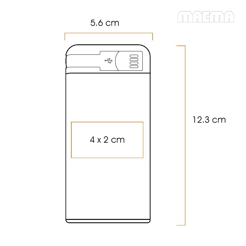 NARA Power bank con capacidad de 4000 mAh y ventosas sujetadoras para celular o Tablet. Compatible para iOS y Android. - MEDIDAS: 12,3 x 5,6 cm