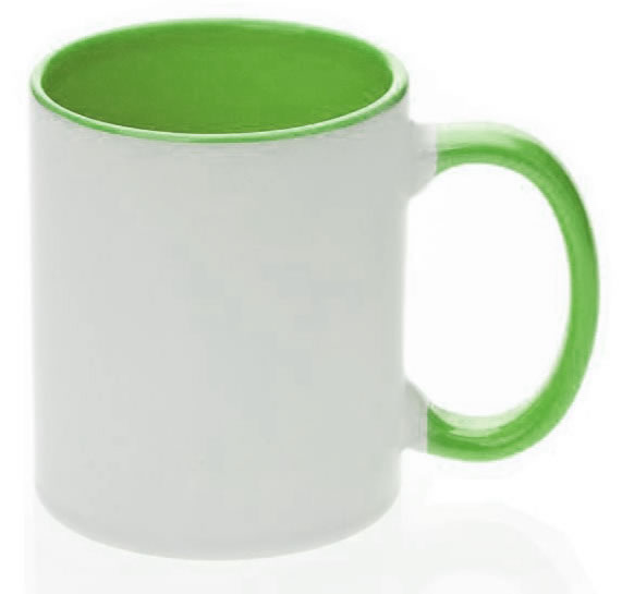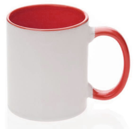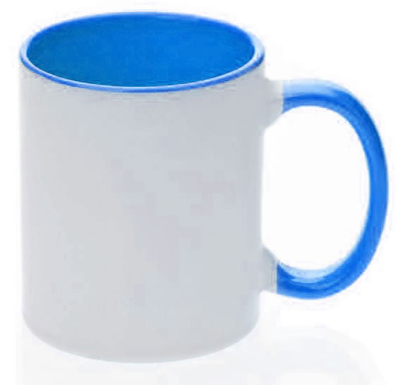 TAZA INTERIOR Y ASA COLORES Material: Cerámica Medidas: 9.5 x 8.2 cm Capacidad: 11oz. Empaque: 36 pzas. Descripción: Taza blanca para sublimación con interior y asa de color. COLORES: NEGRO, ROJO, AZUL COBALTO, VERDE CLARO, AMARILLO, NARAJA, ROSA, AZUL CLARO