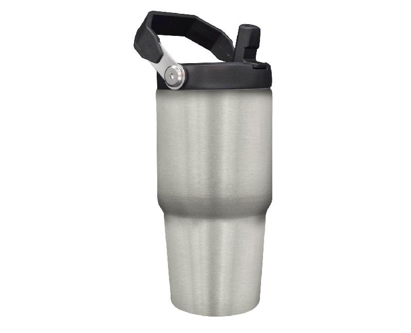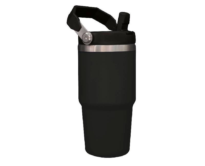 Termo de acero inoxidable con doble pared y aislamiento que mantiene las bebidas calientes y frías, cuenta con popote y asa en tapa