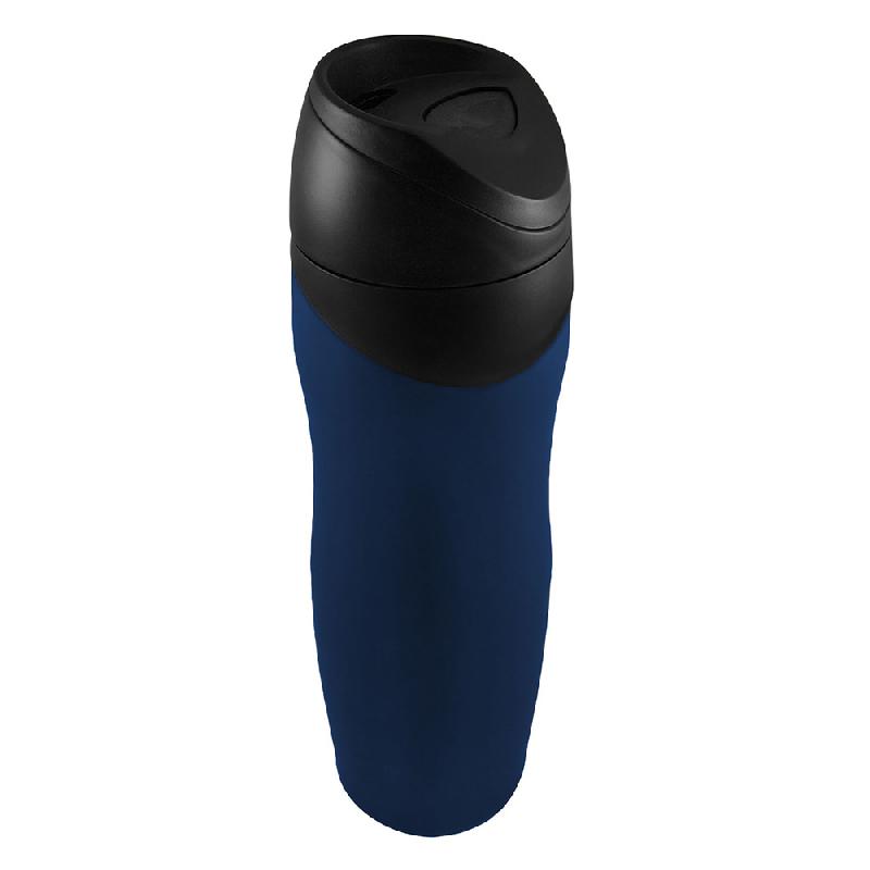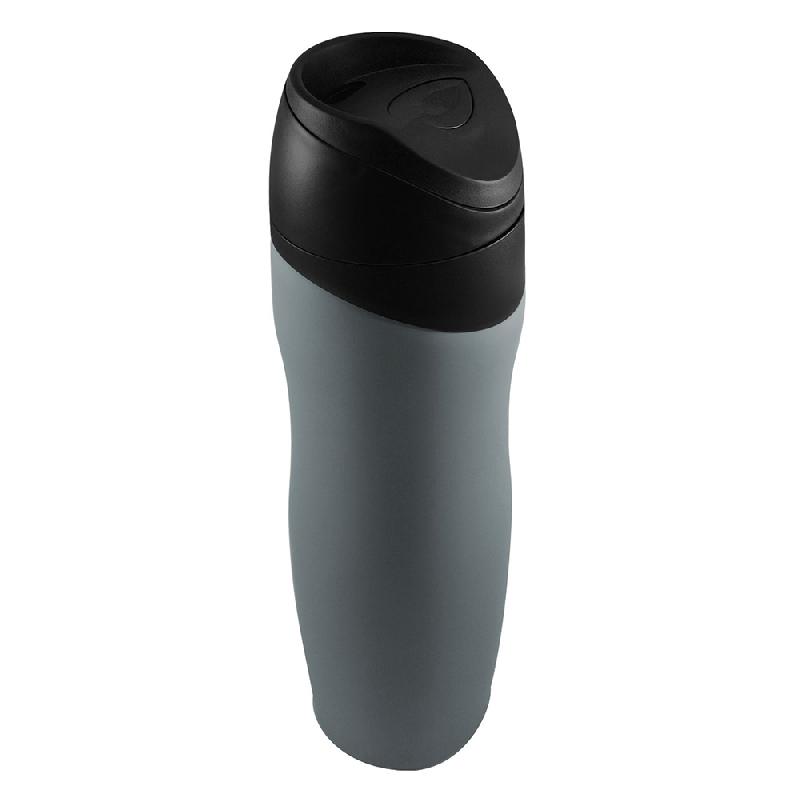 DUBLIN Termo de acero inoxidable de doble pared insulada al vacío. Terminado Rubber y tapa con cierre de rosca con botón pulsador para abrir y cerrar. Capacidad de 450 ml. Certificación FDA. - MEDIDAS: 24,8 x Ø 7,5 cm