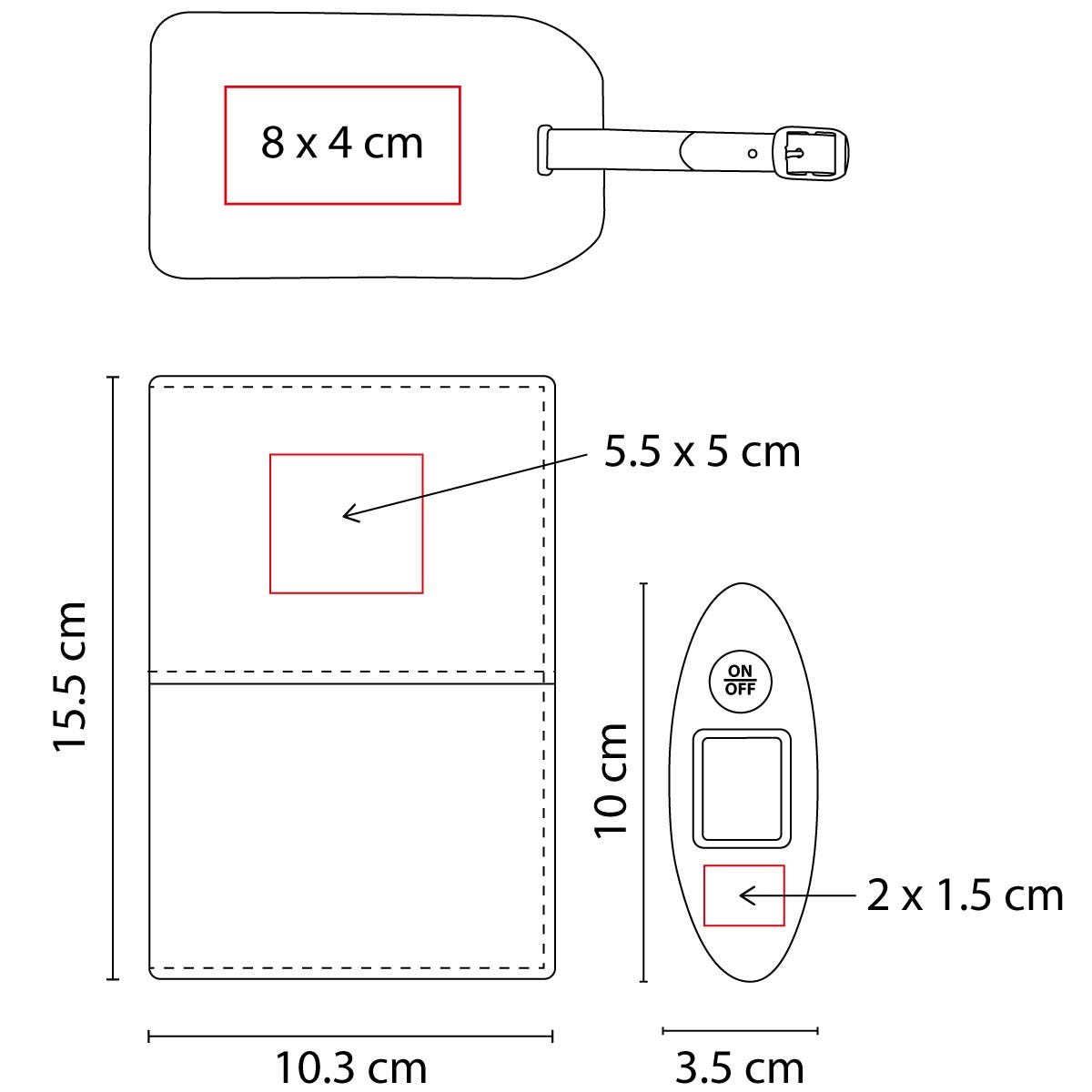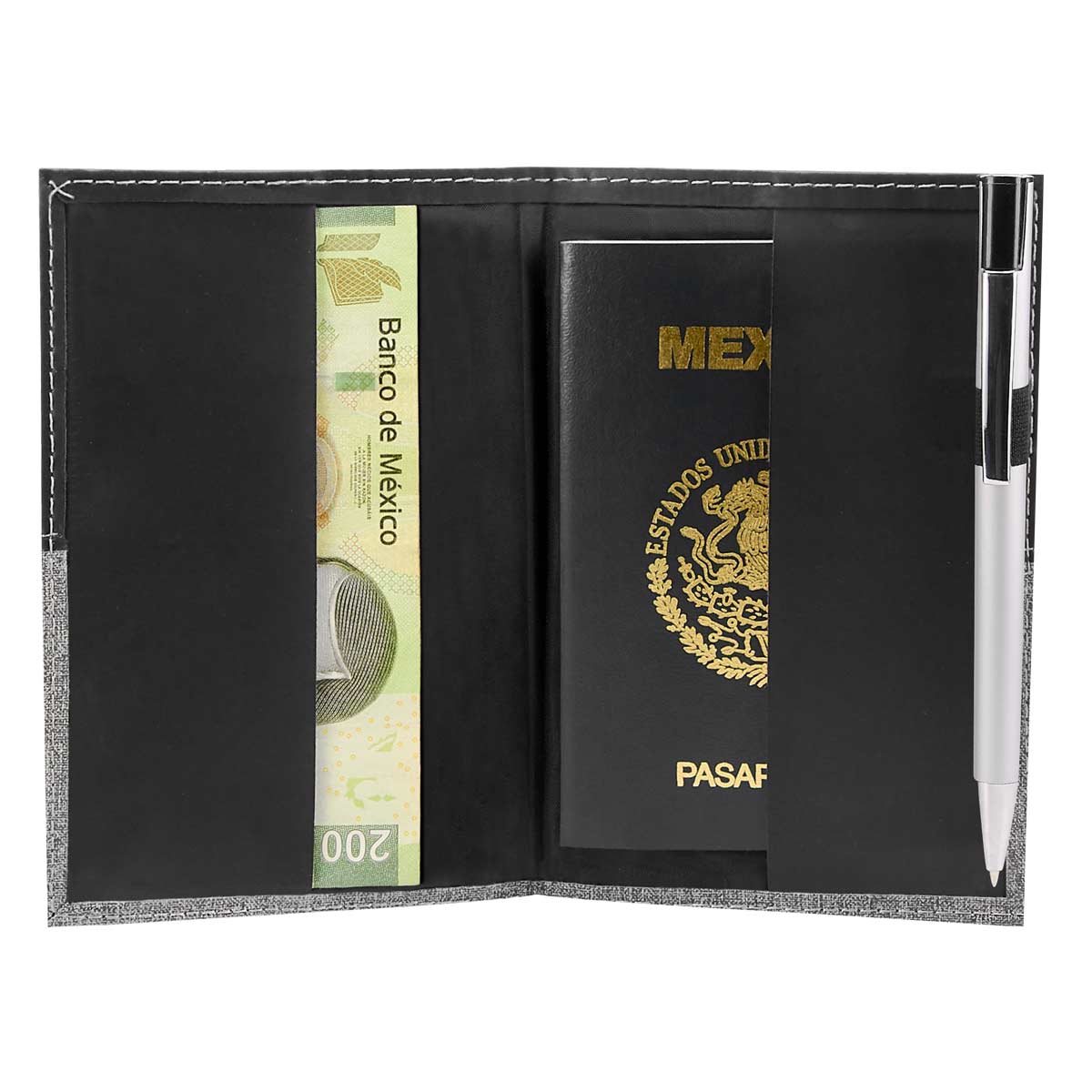 MATERIAL: Plástico Báscula / Curpiel Porta Pasaporte e Identificador de Maletas MEDIDAS: 10 x 3 cm Porta Pasaporte / 3.5 x 10 cm Báscula IMPRESION: Serigrafía MED. EMPAQUE: 63.5 x 49 x 32.5 cm PESO EMPAQUE: 1.3 Kg PIEZAS EMPAQUE: 20