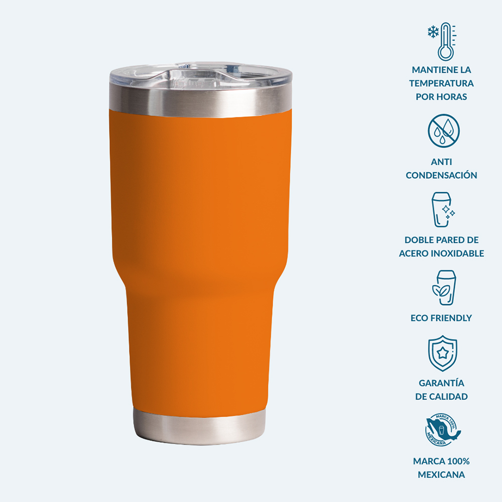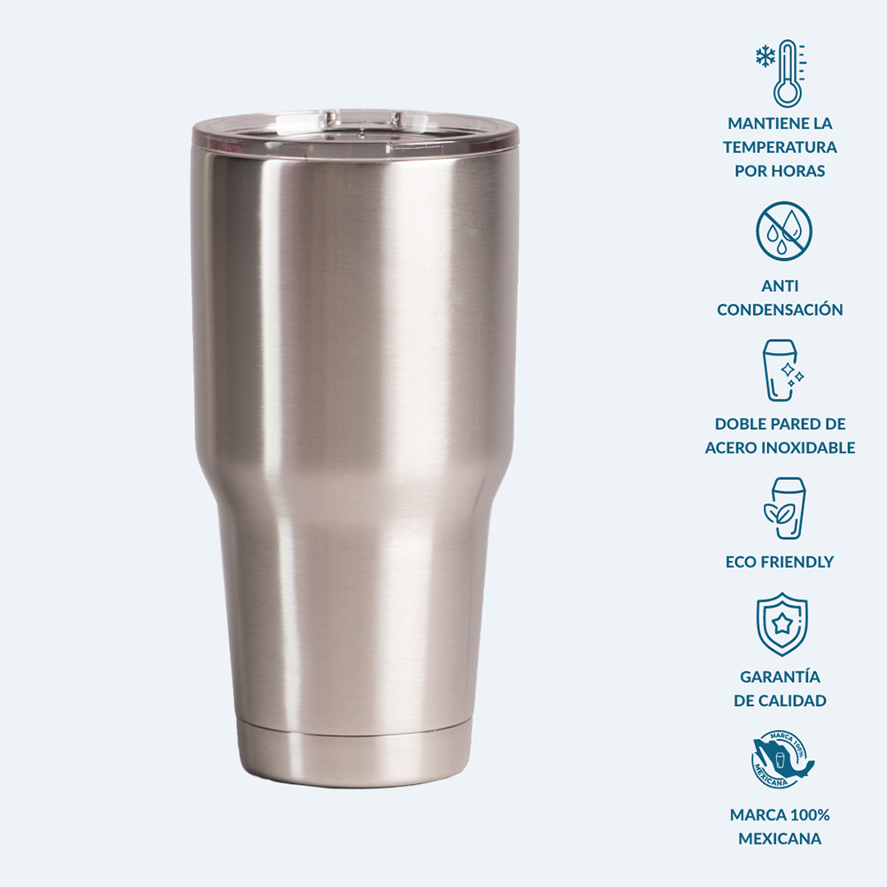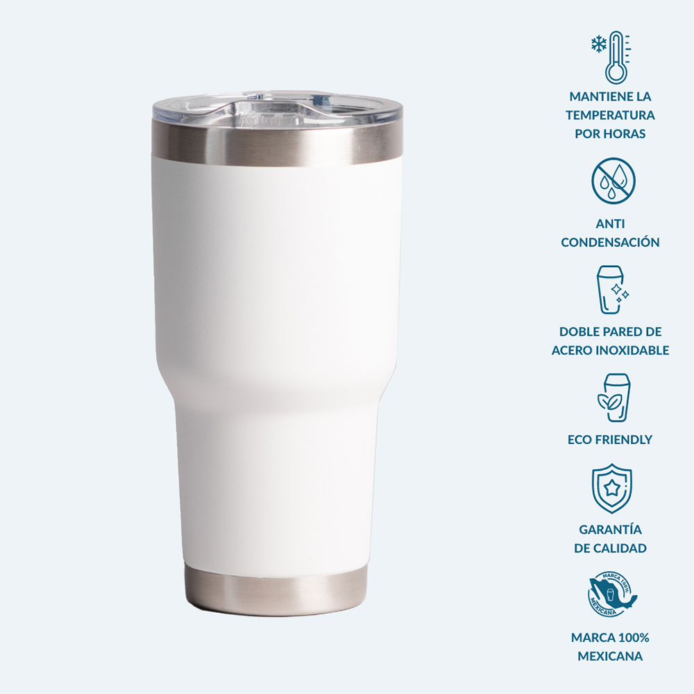 Termo de acero inoxidable con grado cocina libre de BPA, cuenta con una doble pared grado 18/8 anti condensación, la cual permite mantener la temperatura ideal de tu bebida hasta el último trago, aislando el calor y el frío del ambiente. Su composición de alta calidad lo vuelve resistente a la perforación y corrosión, brindado un producto de alta durabilidad. Producto de fácil lavado, permitido en lavavajillas. Capacidad 887 ml.