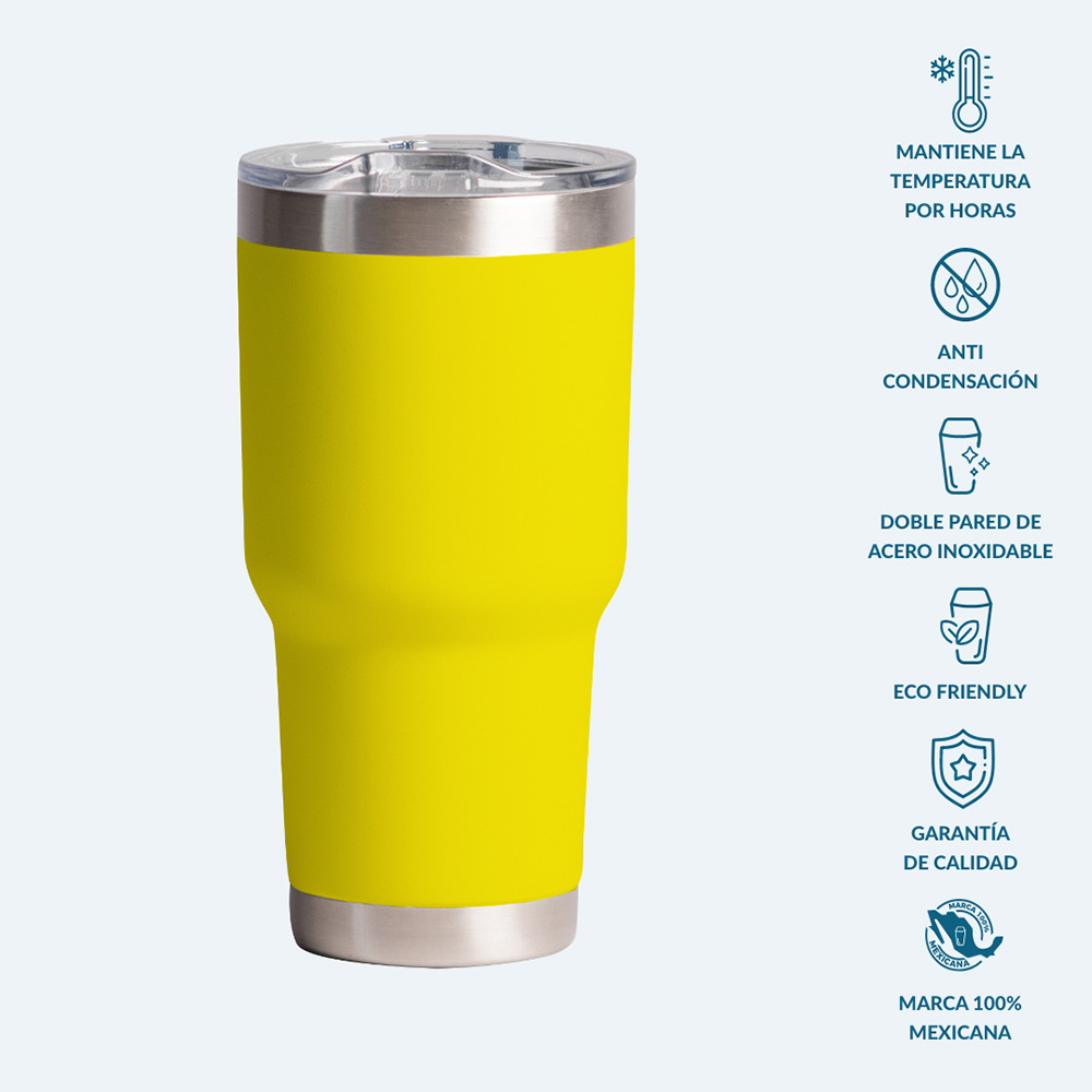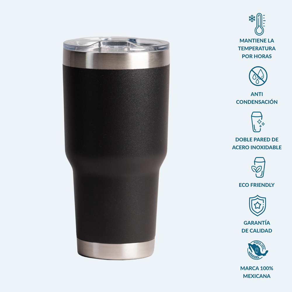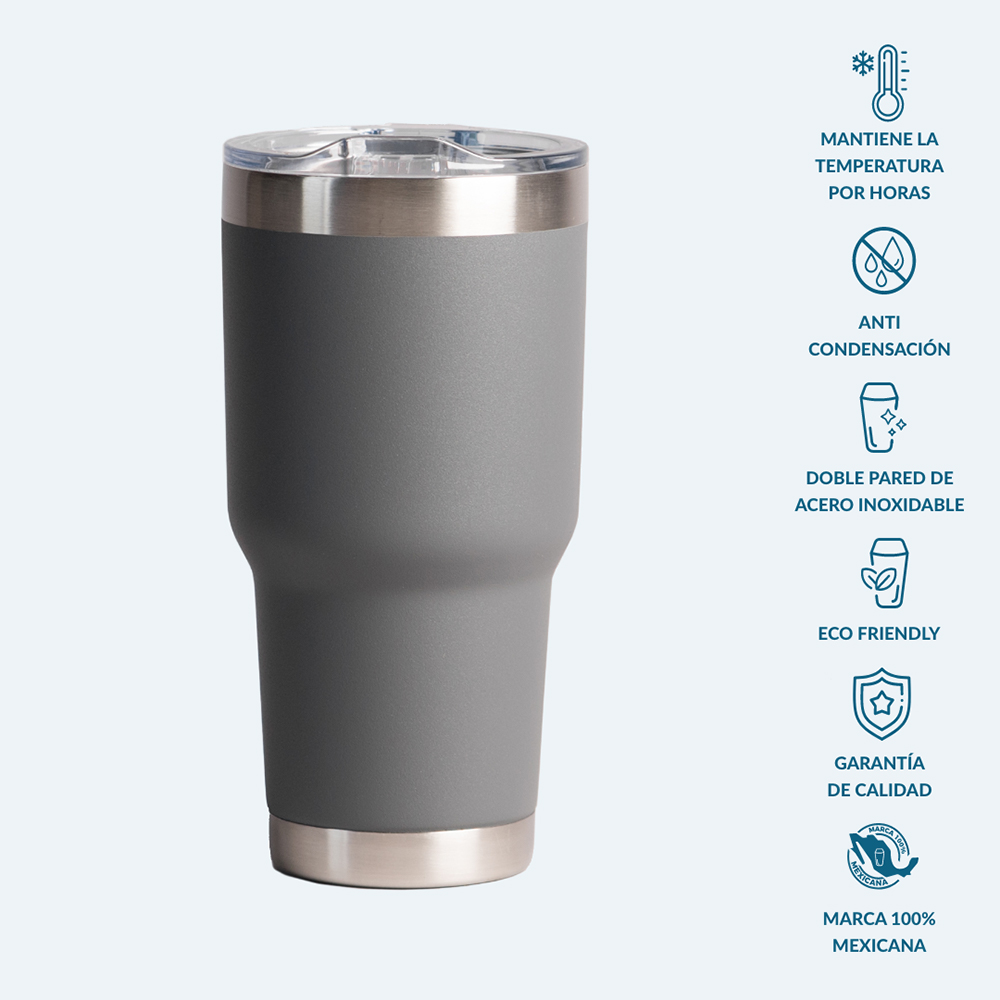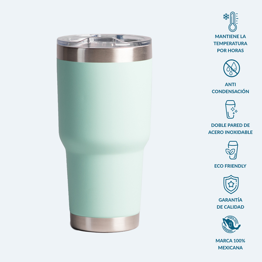 Termo de acero inoxidable con grado cocina libre de BPA, cuenta con una doble pared grado 18/8 anti condensación, la cual permite mantener la temperatura ideal de tu bebida hasta el último trago, aislando el calor y el frío del ambiente. Su composición de alta calidad lo vuelve resistente a la perforación y corrosión, brindado un producto de alta durabilidad. Producto de fácil lavado, permitido en lavavajillas. Capacidad 887 ml.