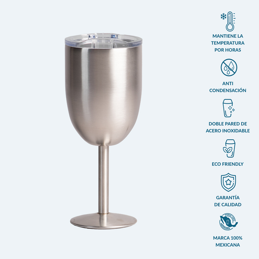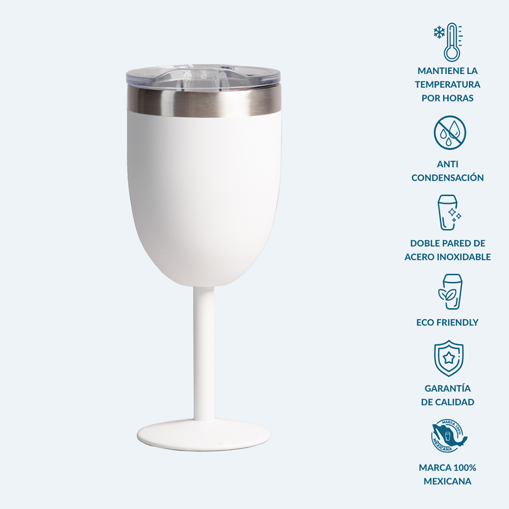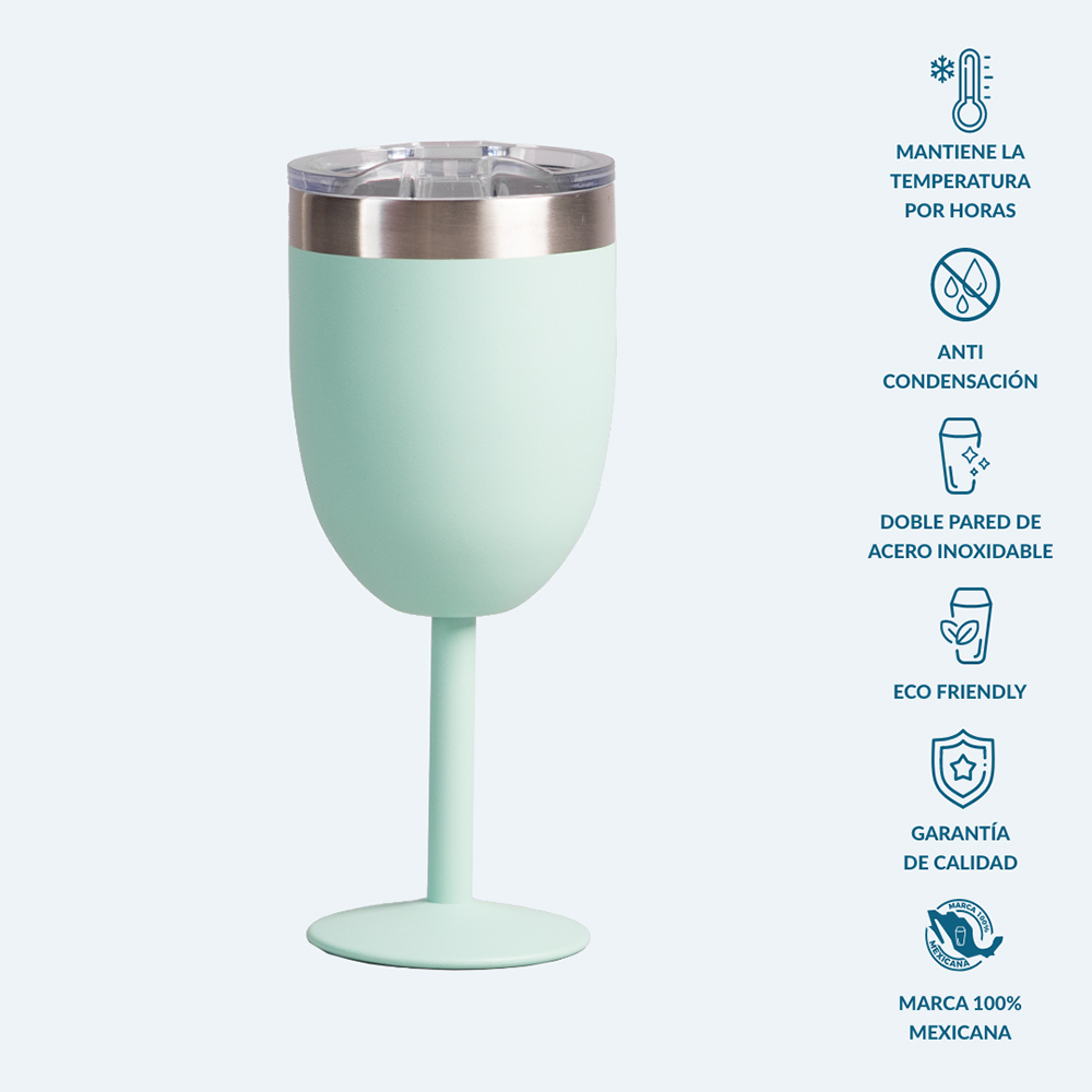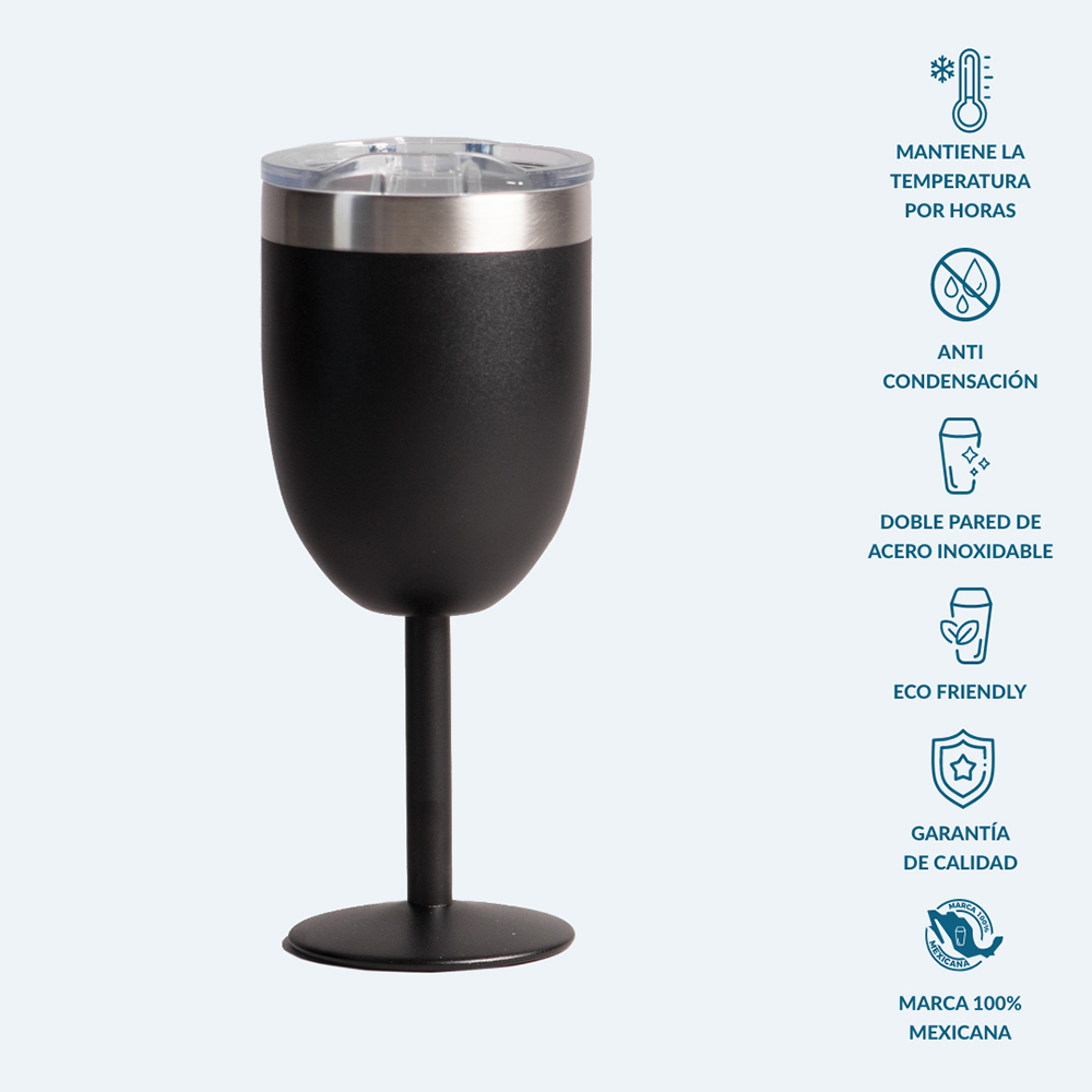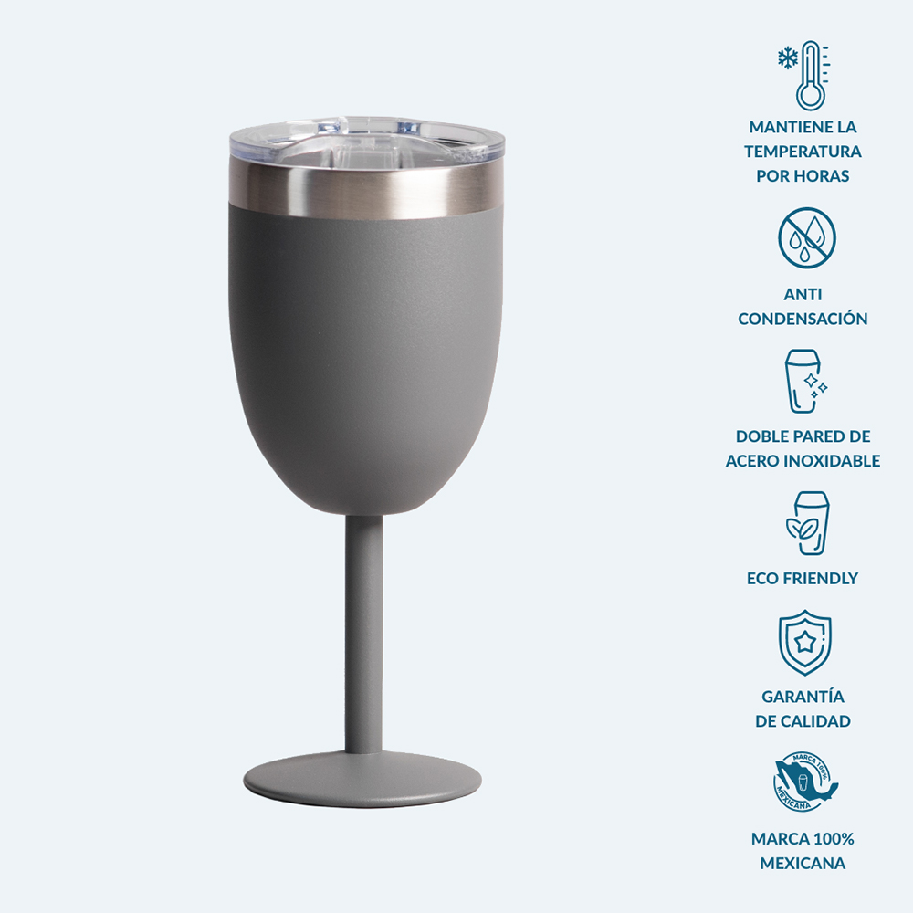 COPA 13 oz Copa de acero inoxidable de grado cocina libre de BPA, cuenta con una doble pared grado 18/8 anti condensación, la cual permite mantener la temperatura ideal de tu bebida hasta el último trago, aislando el calor y el frío del ambiente. Su composición de alta calidad lo vuelve resistente a la perforación y corrosión, brindado un producto de alta durabilidad. Cuenta con un diseño ergonómico de fácil agarre y una tapa deslizable anti goteo. Producto de fácil lavado, permitido en lavavajillas. Capacidad de 384 ml.