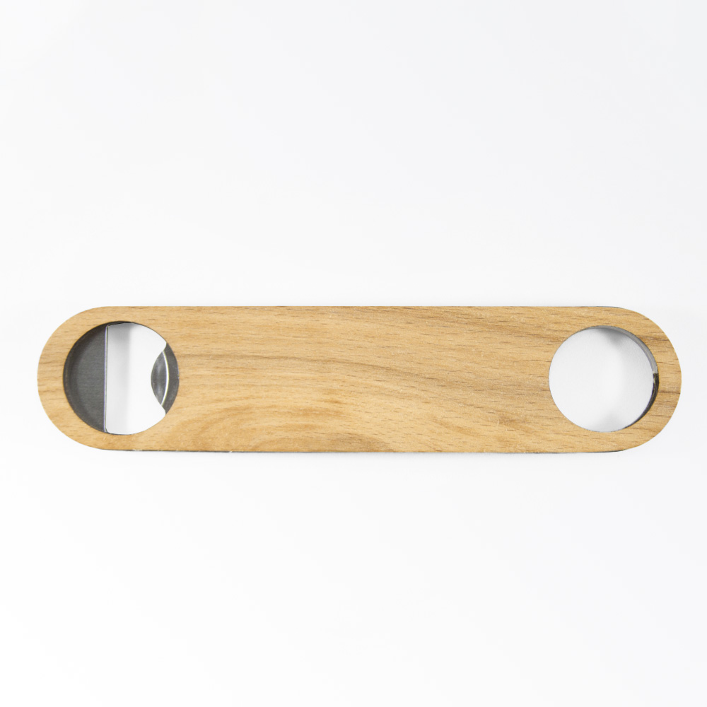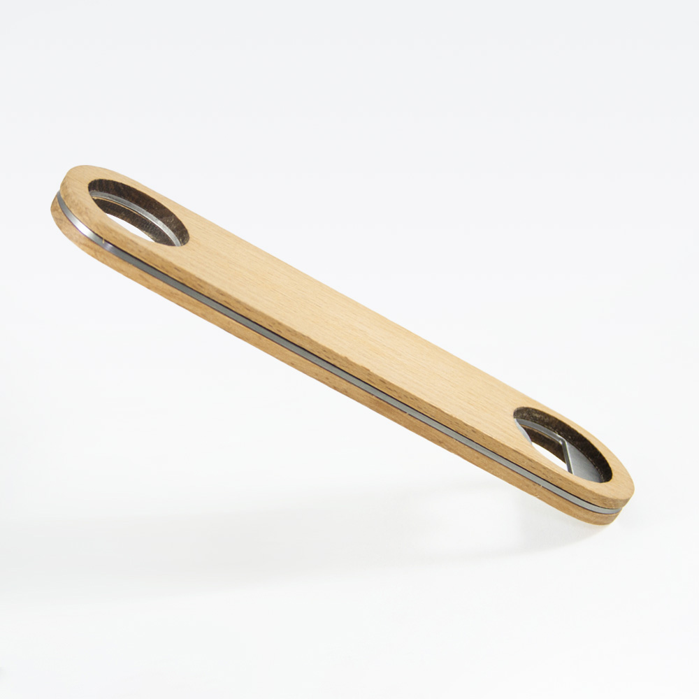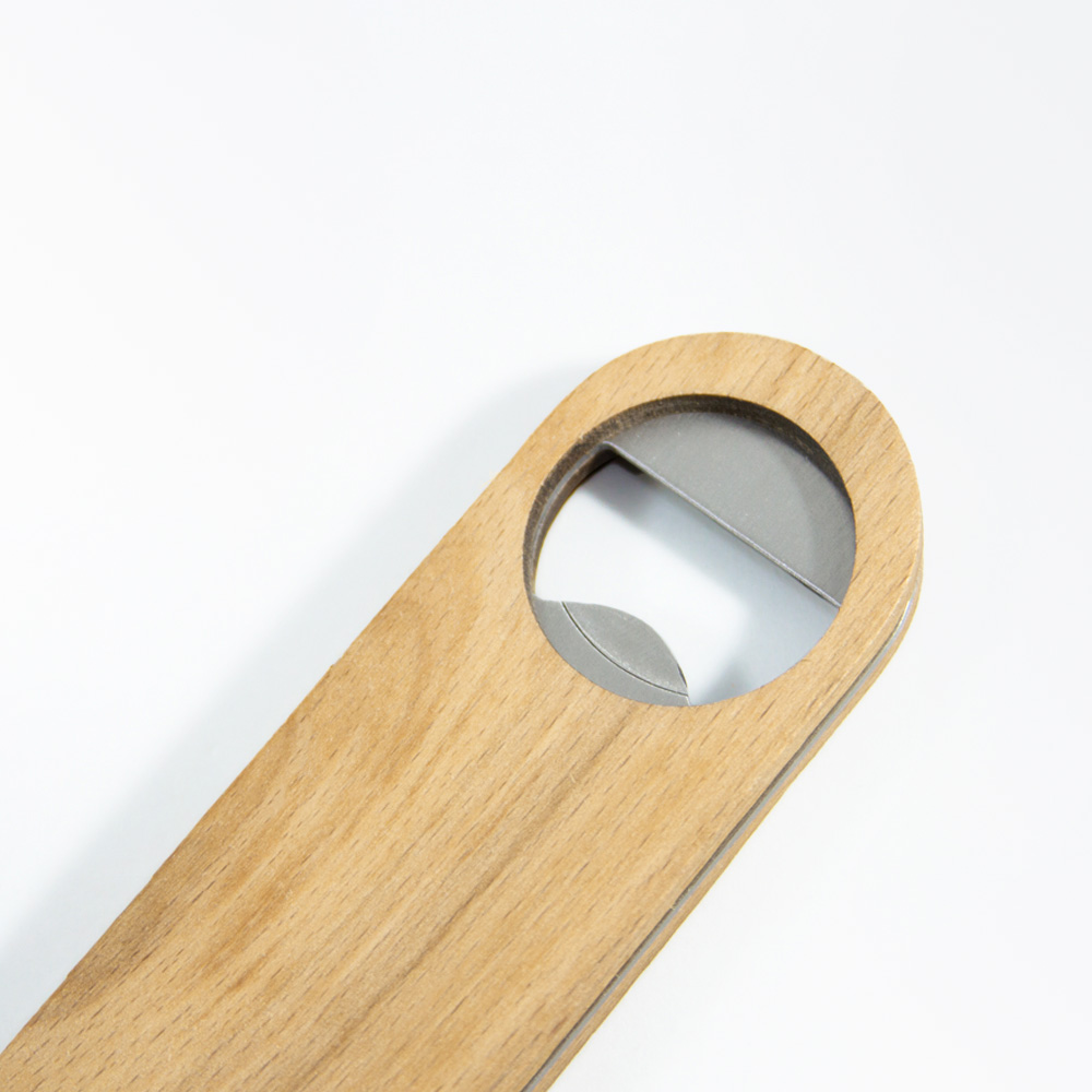 LUANDA. Destapador metálico con colgador/agarradera y cubierta de madera.