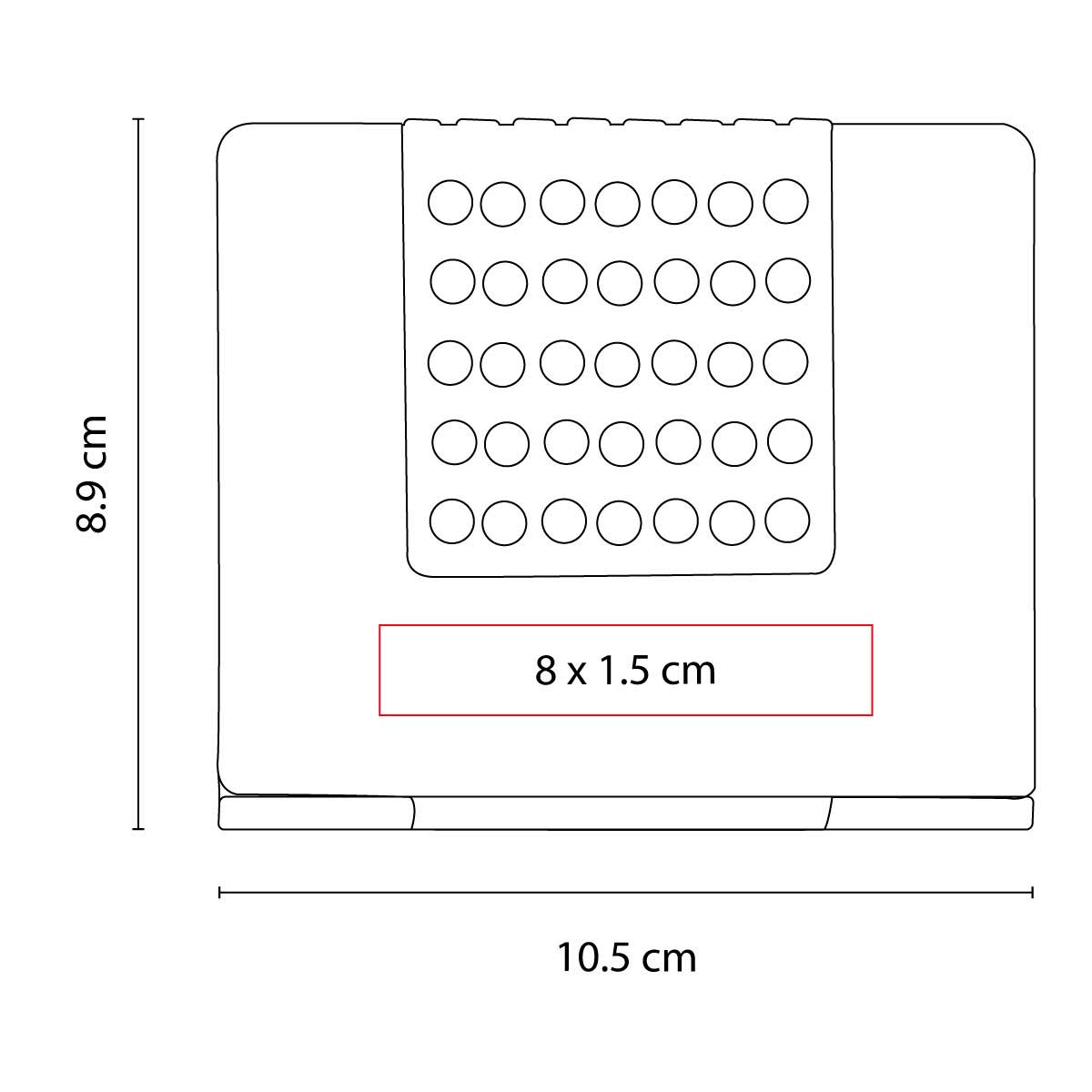 MATERIAL: Aluminio MEDIDAS: 10.5 x 8.9 cm IMPRESION: Láser / Pantógrafo MED. EMPAQUE: 48.5 x 22 x 23.5 cm PESO EMPAQUE: 16 Kg PIEZAS EMPAQUE: 200