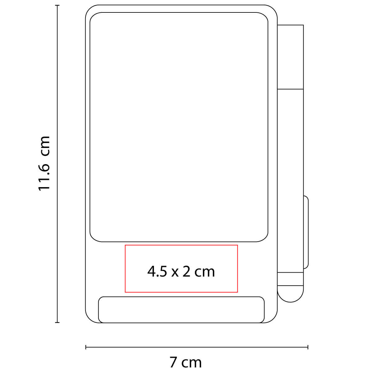 MATERIAL: Plástico MEDIDAS: 7 x 11.6 cm IMPRESION: Serigrafía / Tampografía MED. EMPAQUE: 44 x 24 x 34 cm PESO EMPAQUE: 24 Kg PIEZAS EMPAQUE: 200