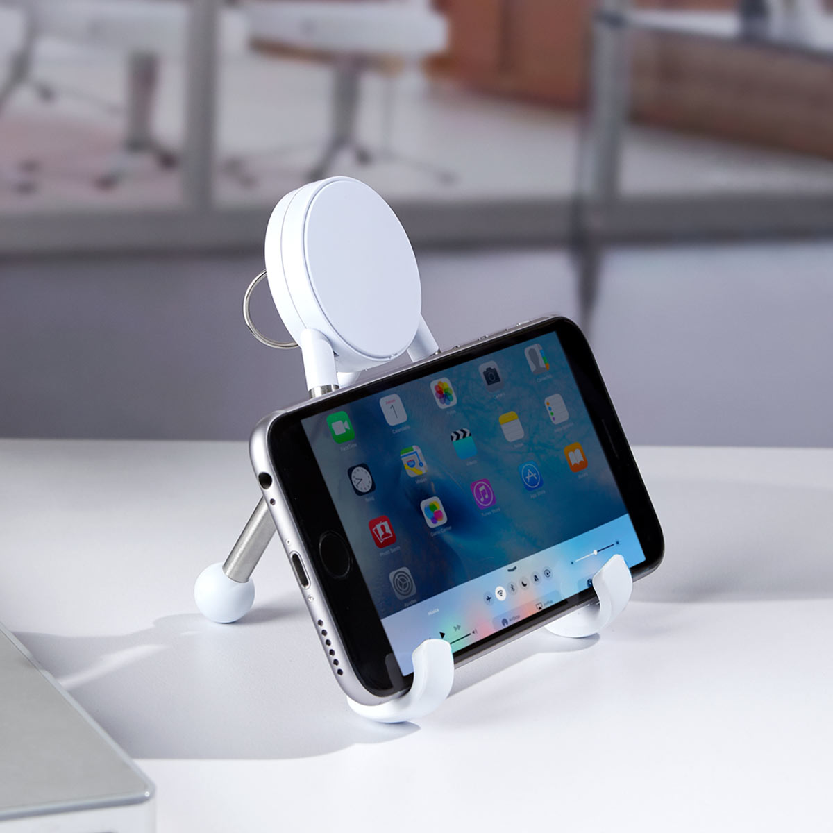 SOPORTE SEGINUS - Base para smartphone o tablet con limpia pantallas.