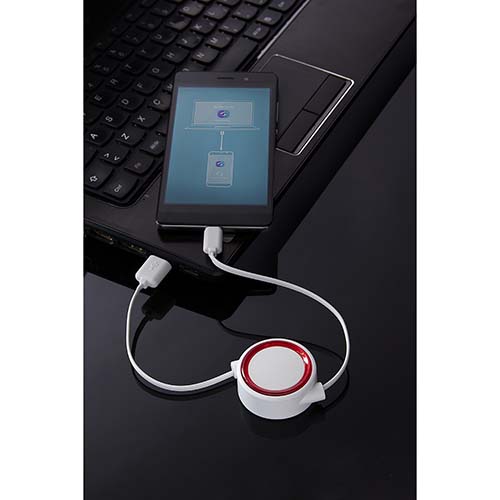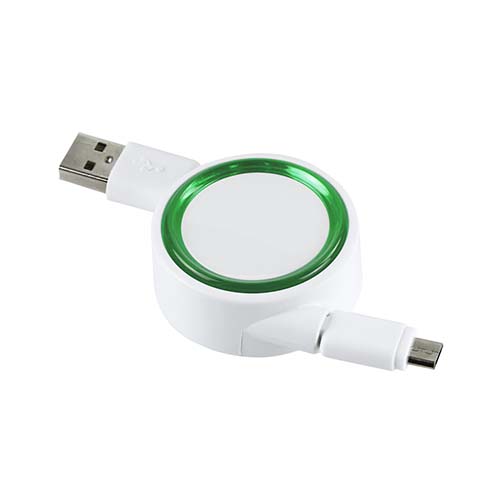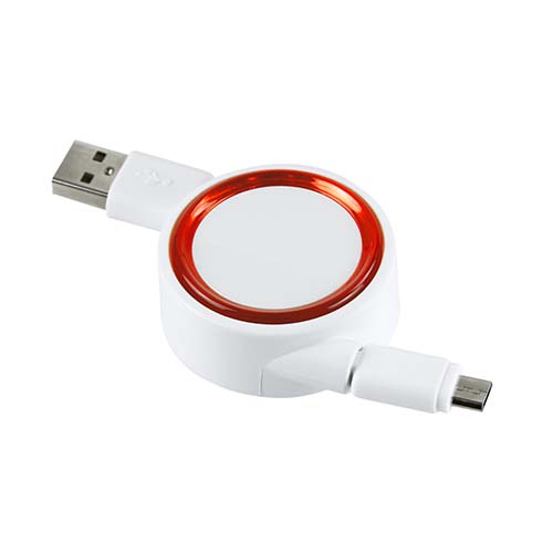 CABLE BASKIR - Cable retráctil cargador y para transferencia de datos. Compatible con USB y micro USB. Incluye placa y marco circulares. Longitud de cable 73 cm aprox.