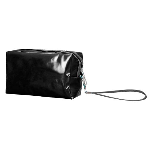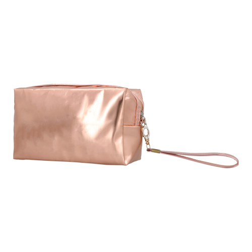 SERENA Cosmetiquera de PVC con acabado metálico, cierre, correa intercambiable y fuelle.