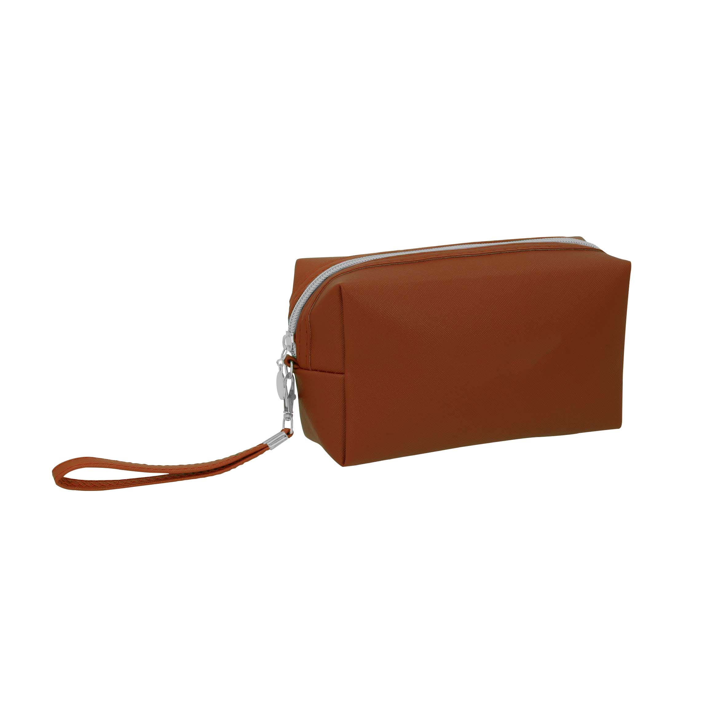 MEGAN Cosmetiquera de curpiel con forro interior y correa.
