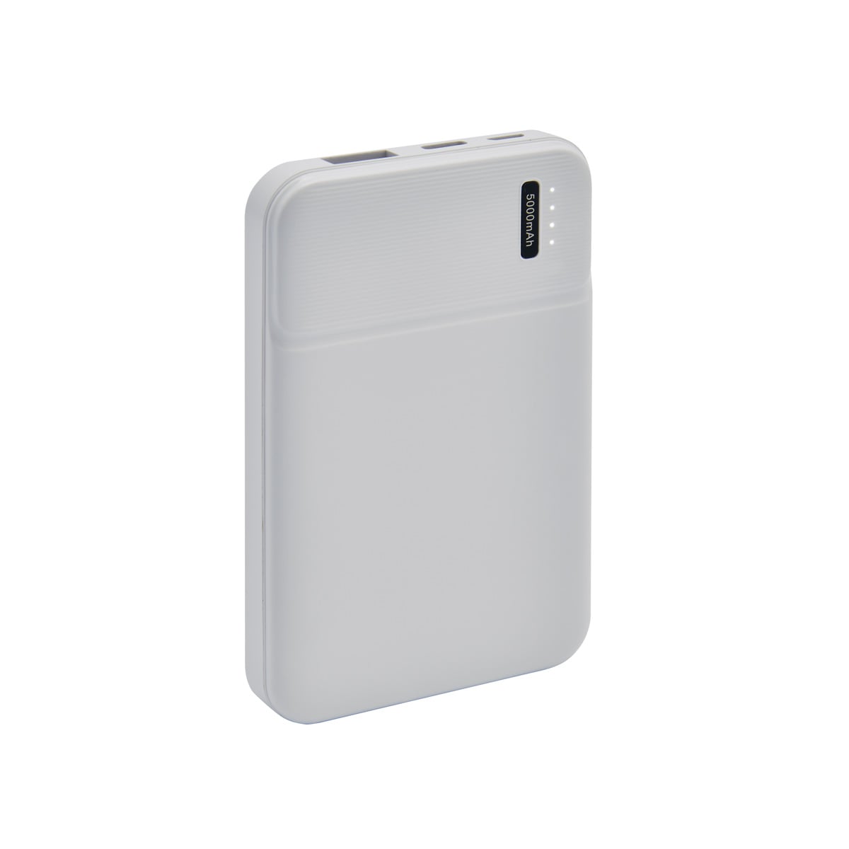 POWER BANK DAVUL - Batería auxiliar para smartphone, capacidad 5,000 mAh. Incluye 1 puerto de salida USB para carga de dispositivos y 2 puertos de entrada: 1 micro USB y 1 tipo C exclusivo para recarga de la batería (no carga dispositivos). Incluye 4 LEDs indicadores de carga y cable micro USB.