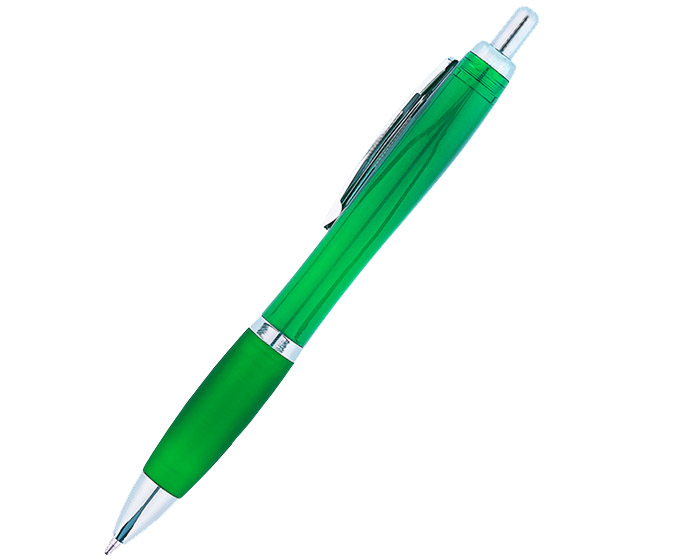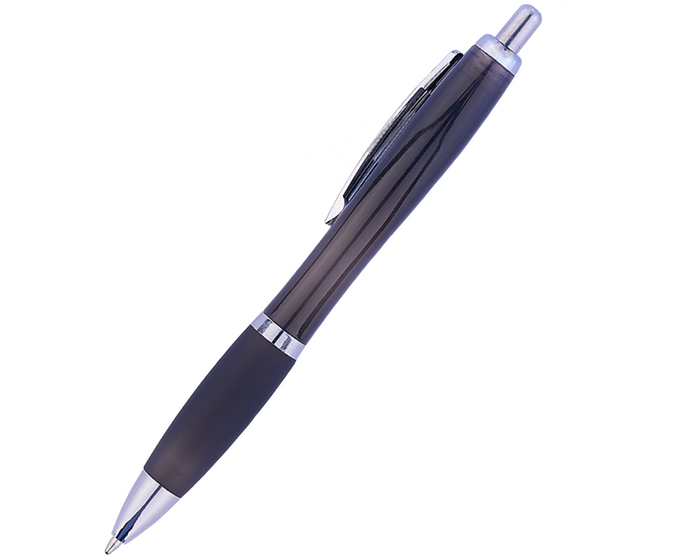 AMIRA - Bolígrafo de plástico con cuerpo traslúcido, clip metálico y goma antideslizante. Mecanismo de click.