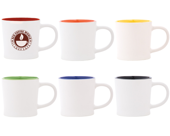 CYLIN - Taza de cerámica bicolor con asa. Textura interior de ondas. CAP. 11 OZ. Venta en múltiplos de 12.