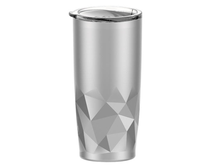 ENZO - Termo de doble pared de acero inoxidable insulado al alto vacío, mantiene las bebidas frías por 24 hrs. y calientes por 12 hrs. Exterior con diseño geométrico. Incluye tapa a presión transparente con seguro deslizable. CAP. 650 ml. Presentación: caja en color blanco.