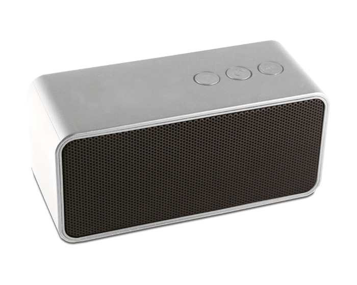 AMBIENT - Bocina bluetooth con manos libres. Cuenta con controles de audio y entrada AUX. Incluye cable de carga y cable AUX. Presentación: caja en color blanco.