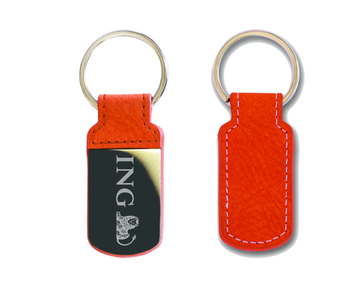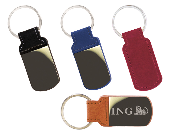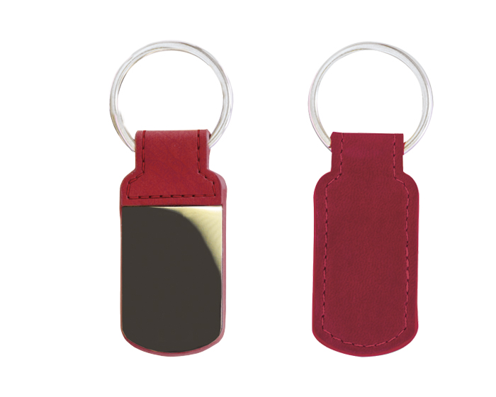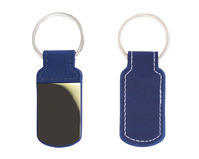 KAY - Llavero de curpiel con placa metálica para grabado láser y arillo metálico reforzado.