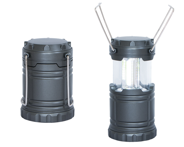 CAMPING - Lámpara LED de camping con sistema automático de encendido y apagado. Cuenta con doble asa abatible. Utiliza 3 Baterías AAA (incluidas) Presentación: caja en color blanco.